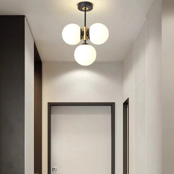Modern Simplicity Hardware Glass Ball Shade 3-Light Semi-Flush Mount Ceiling Light For Living Room