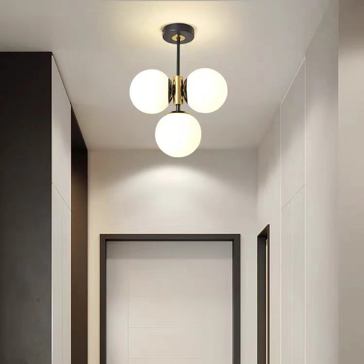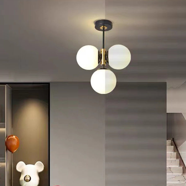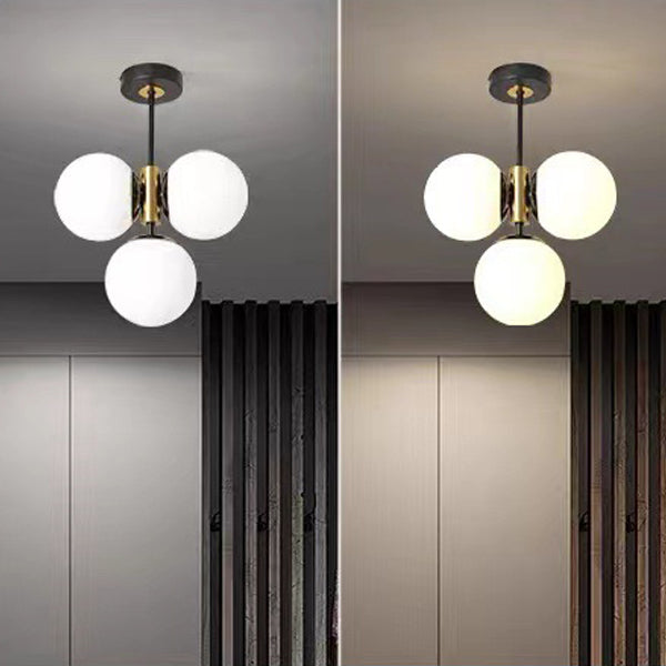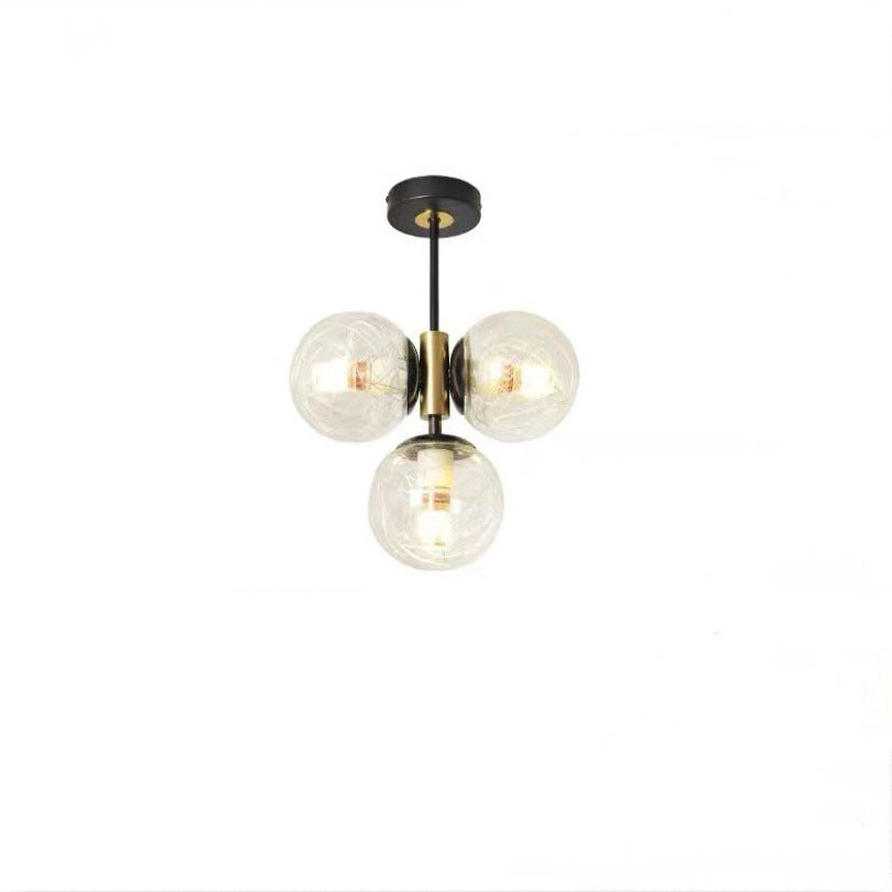 Modern Simplicity Hardware Glass Ball Shade 3-Light Semi-Flush Mount Ceiling Light For Living Room