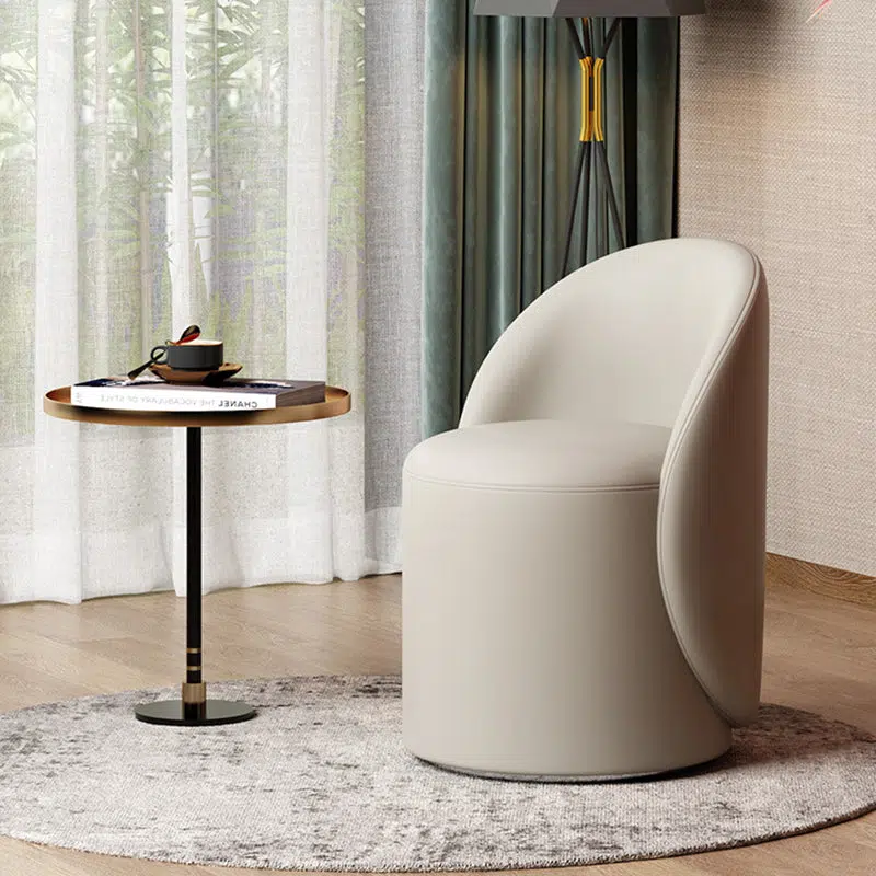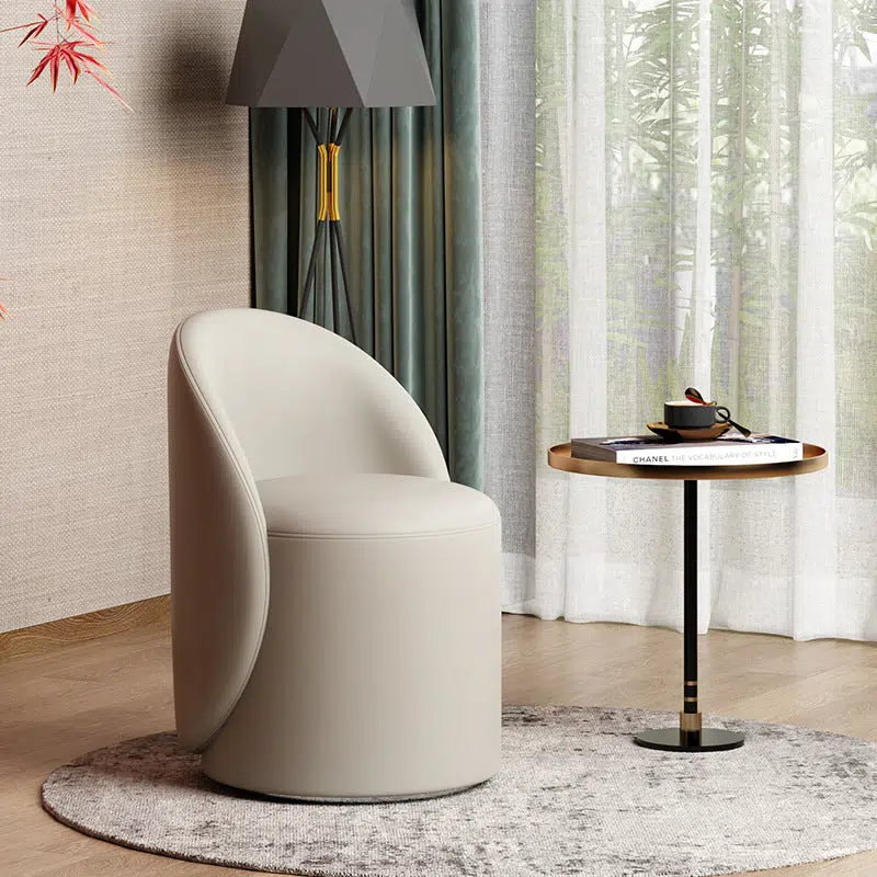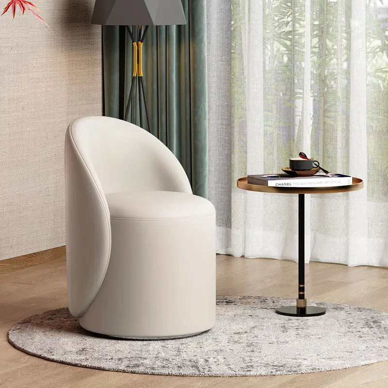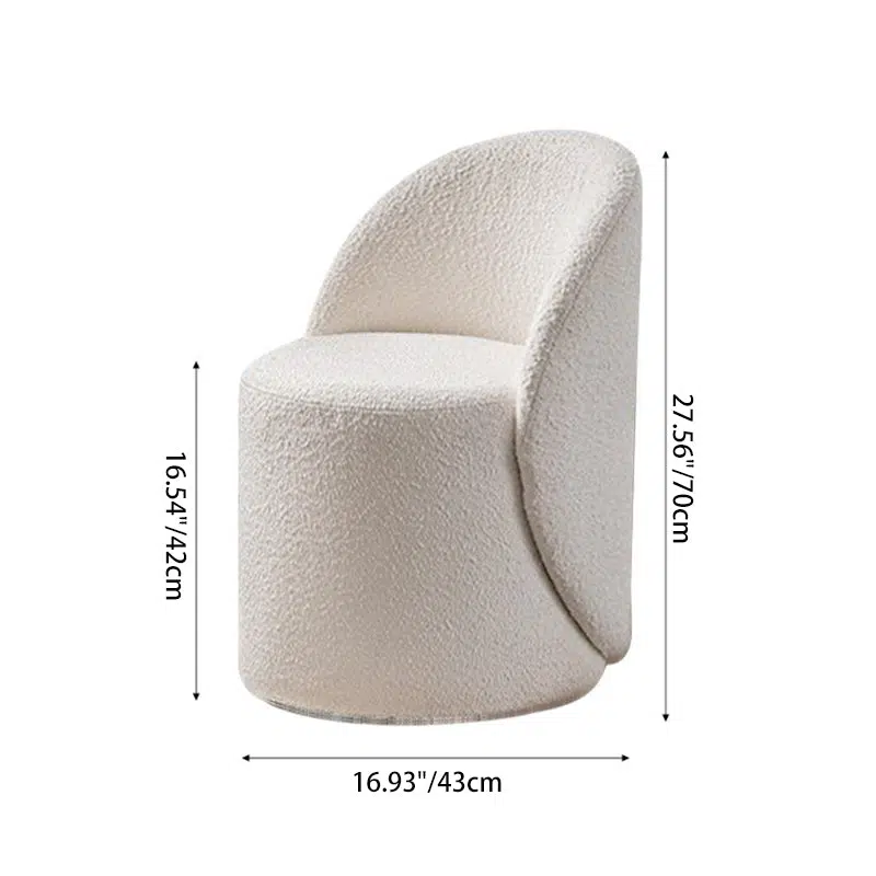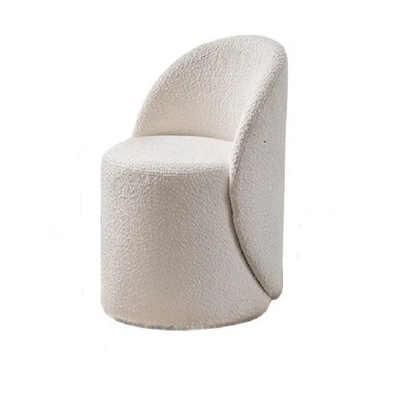 Modern Simplicity Lambswool Fleece Leather Wood Sponge Thumb Round Curved Vanity Stool Backrest Swivel For Bedroom