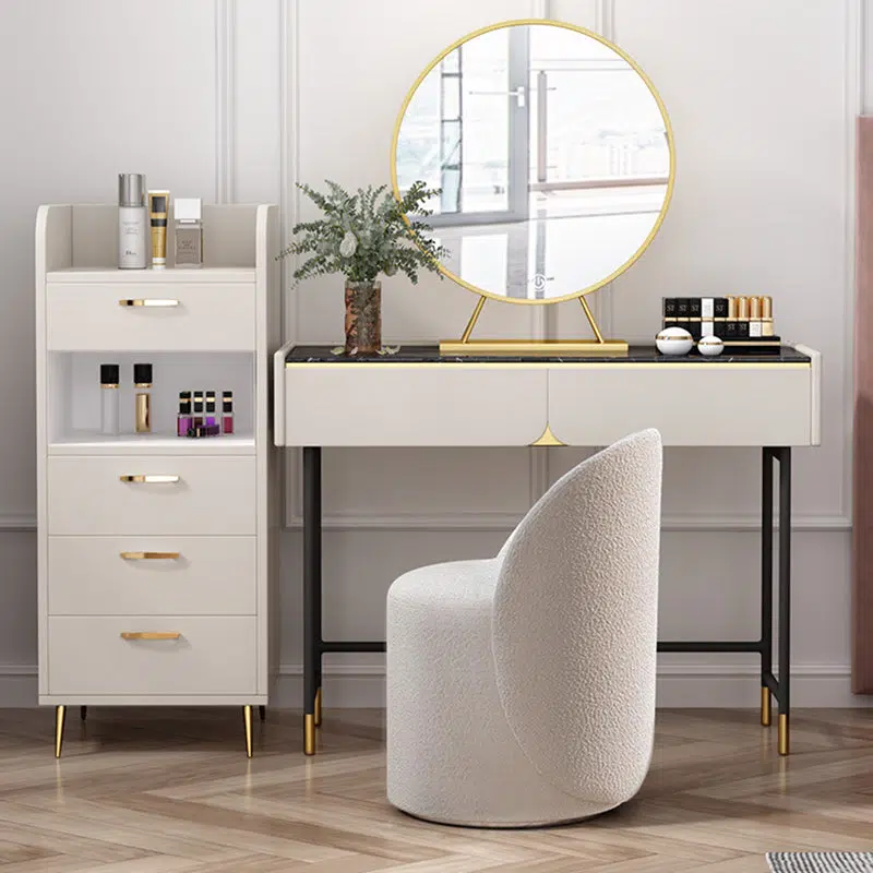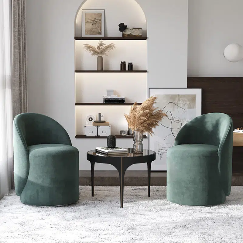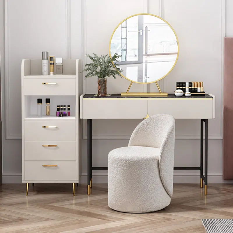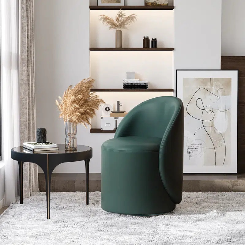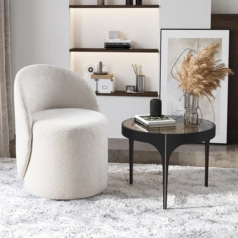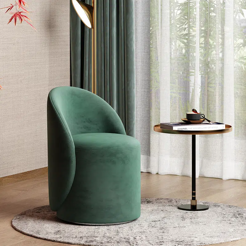 Modern Simplicity Lambswool Fleece Leather Wood Sponge Thumb Round Curved Vanity Stool Backrest Swivel For Bedroom