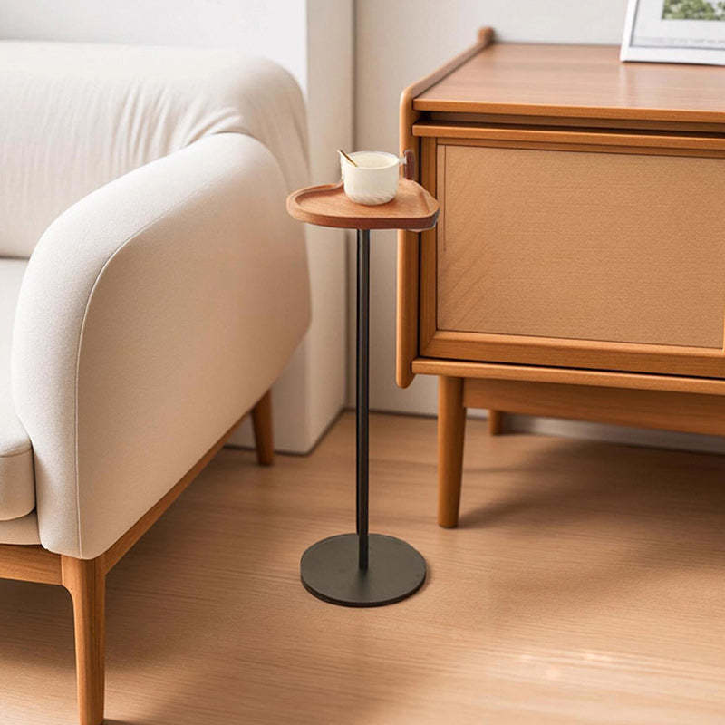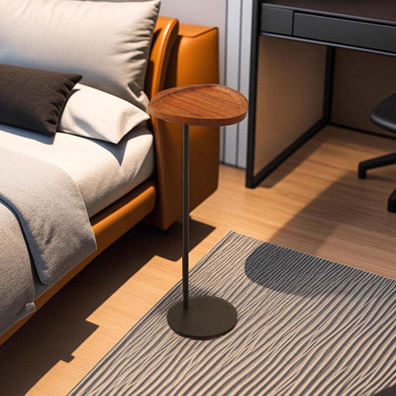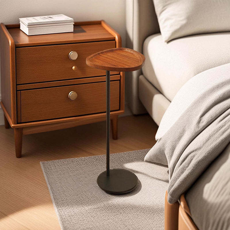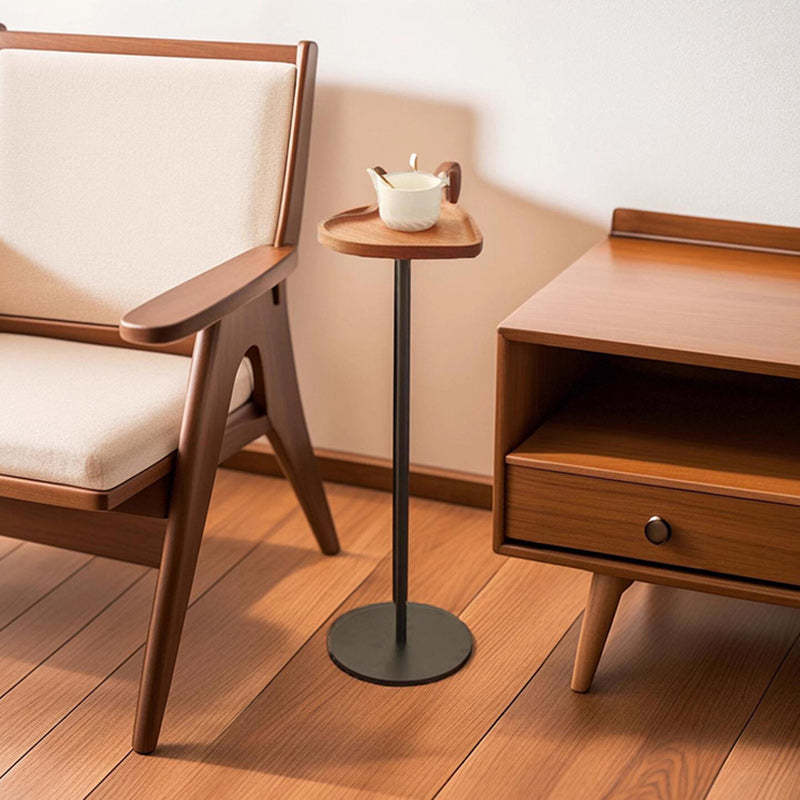 This compact side table features a heart or shield-shaped top in a warm walnut finish. crafted from durable MDF and iron. With its built-in tray design and minimalist silhouette. it's a stylish and space-saving accent for bedrooms. balconies. or living room corners.