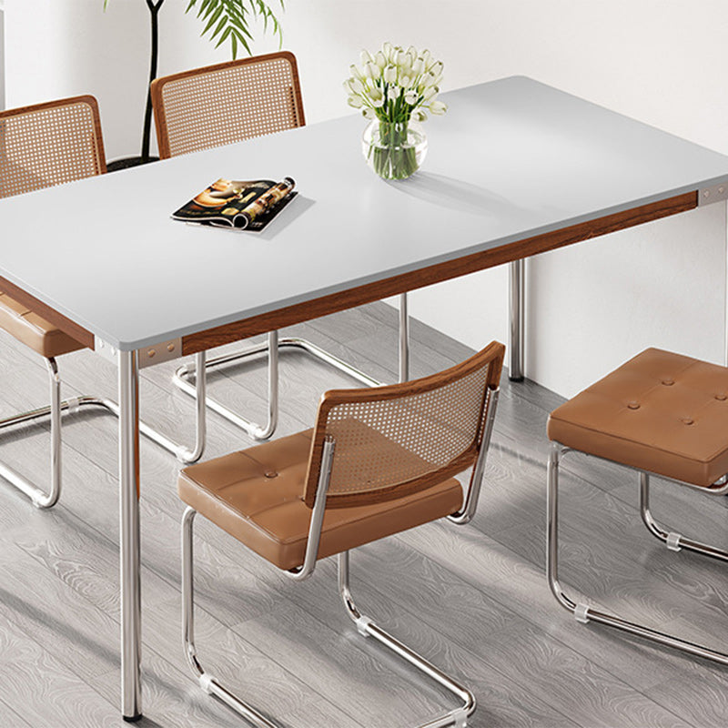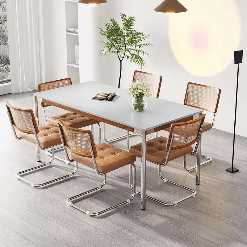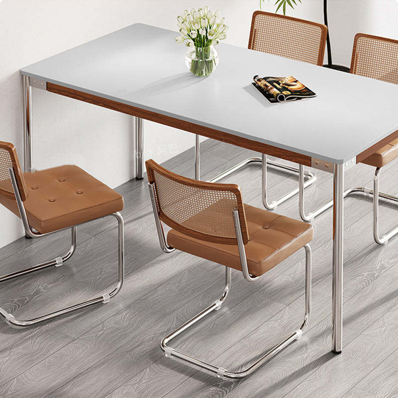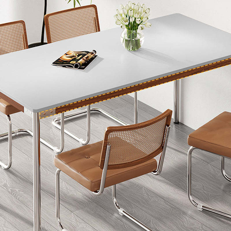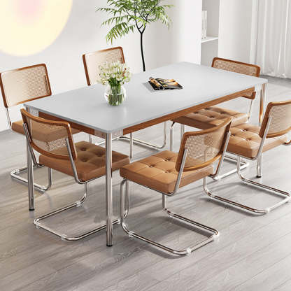 Modern Simplicity Rectangle Sintered Stone Stainless Steel Dining Table & Dining Chair For 6 Seats