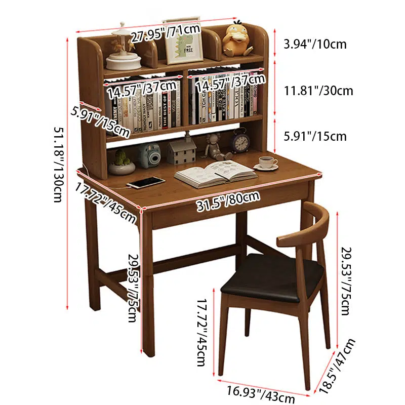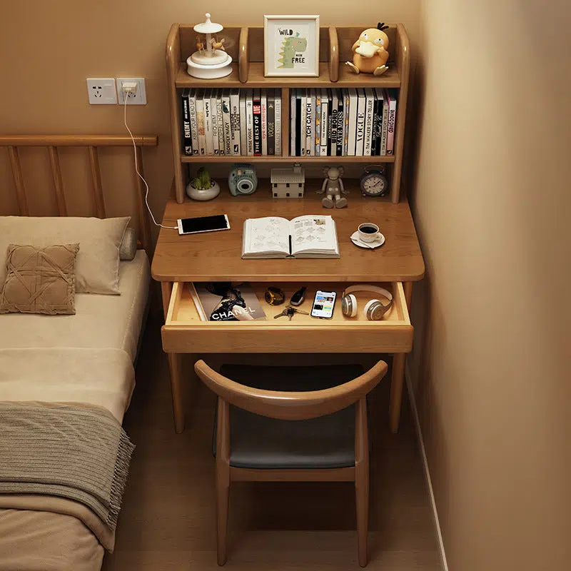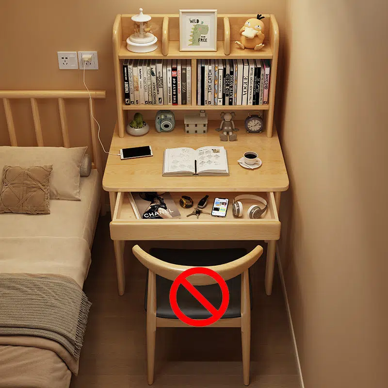 Modern Simplicity Rectangle Solid Wood Rubberwood Desk 1-Drawer For Home Office