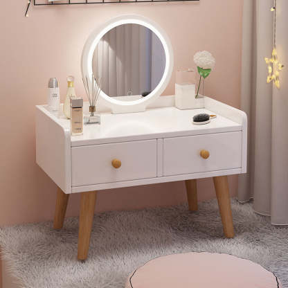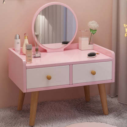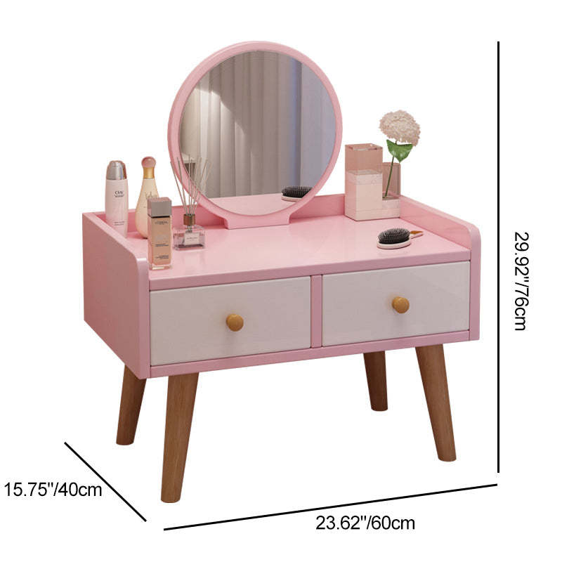 Modern Simplicity Rectangular Cube Round Mirror Density Board Hardware Makeup Vanity 2 - Drawer For Bedroom