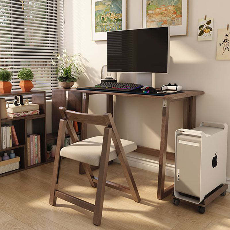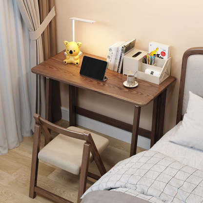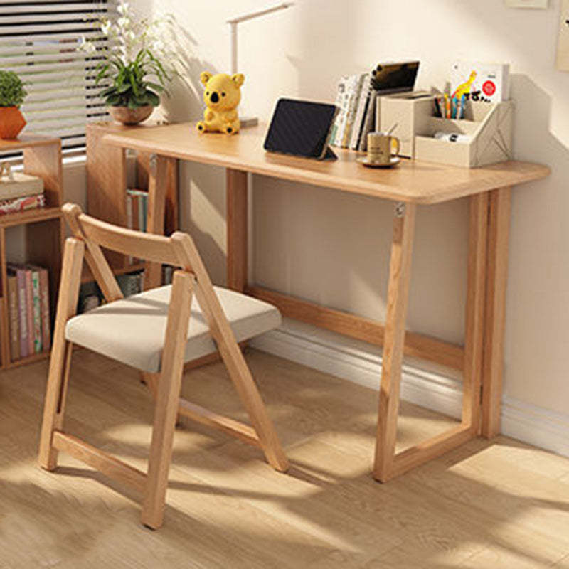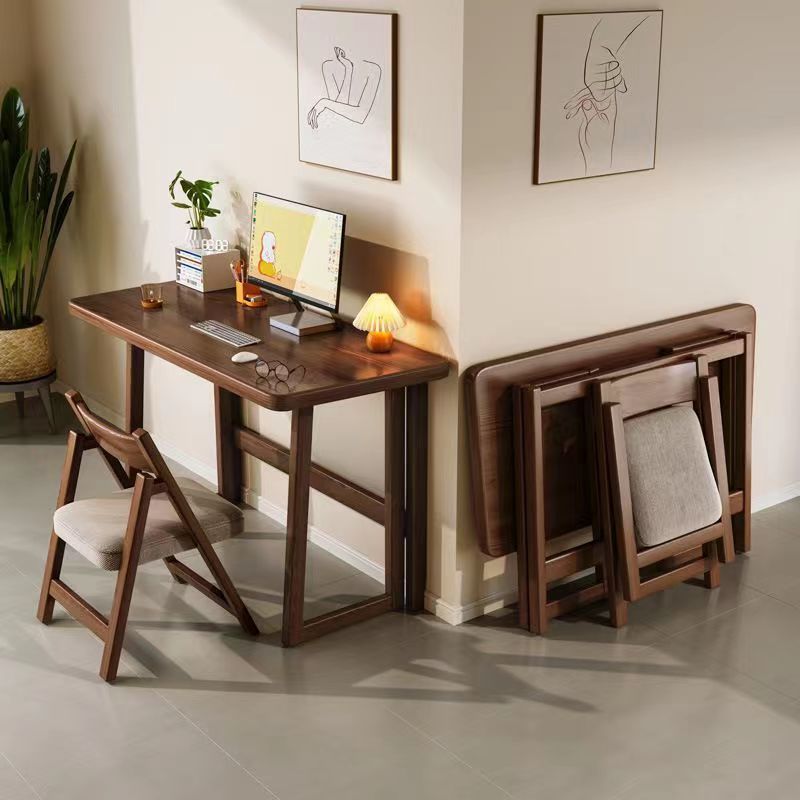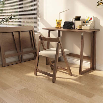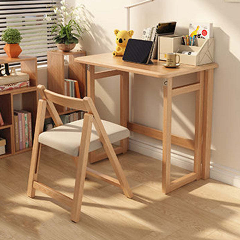 Modern Simplicity Rubber Wood Hardware Rectangular Foldable Desk & Chair Set For Study