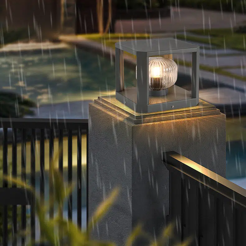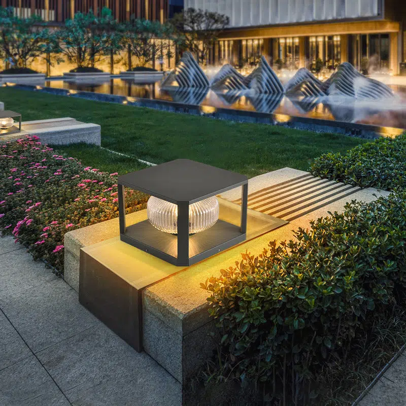 Modern Simplicity Solar Waterproof Stainless Steel Aluminum Glass Cube Ball 1-Light Landscape Lighting Outdoor Light For Outdoor Patio