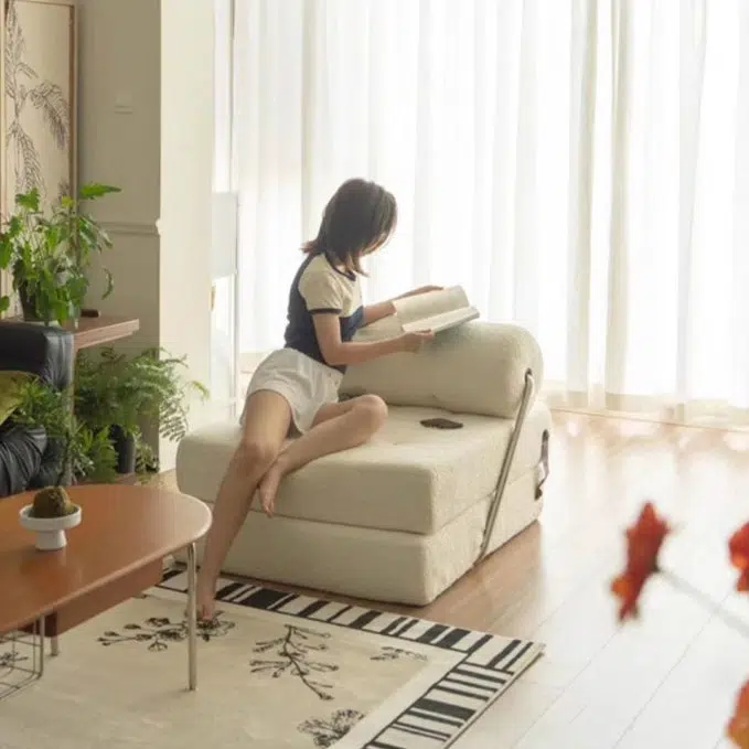 Modern Simplicity Velvet Leather Stainless Steel Sponge Square Tofu Foldable Lazy Sofa Backrest For Bedroom