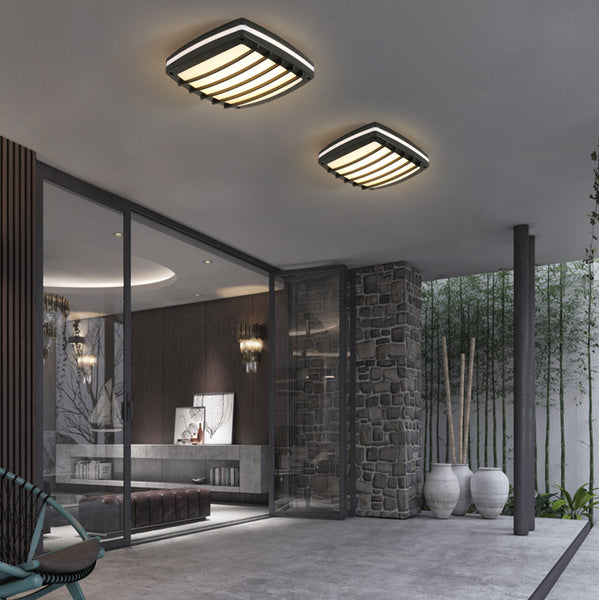 Modern Simplicity Waterproof Aluminum Acrylic Square Line LED Outdoor Flush Mount Ceiling Light For Outdoor Patio
