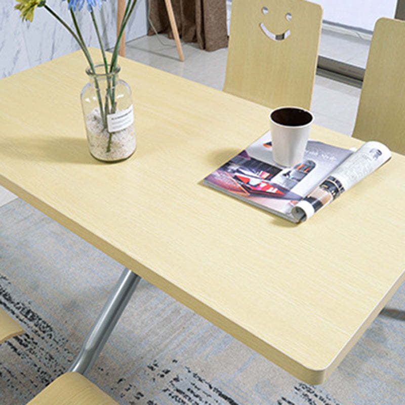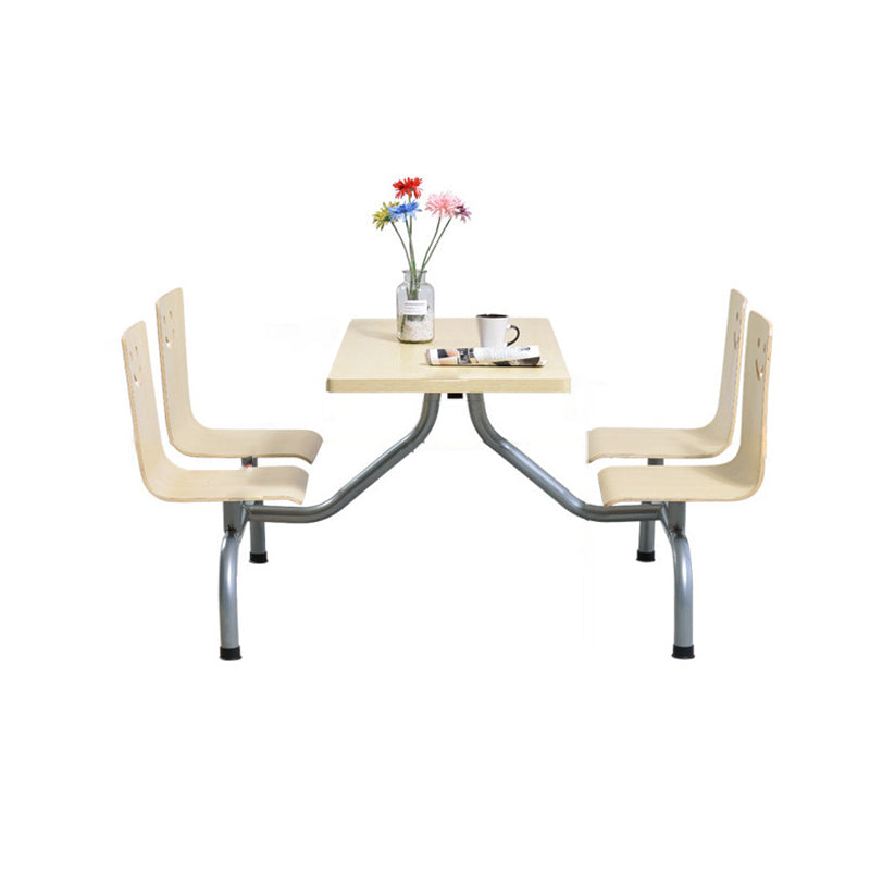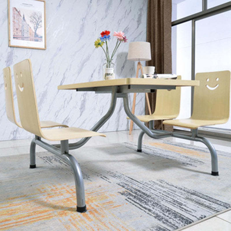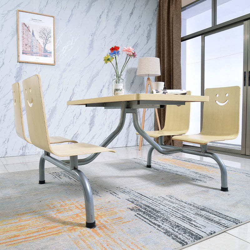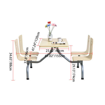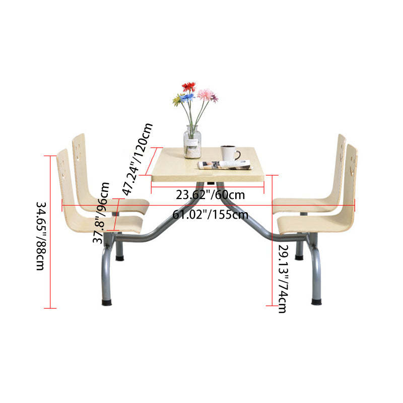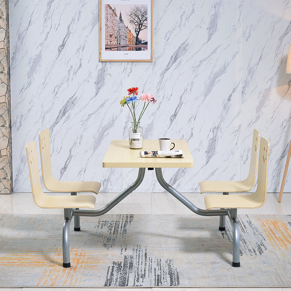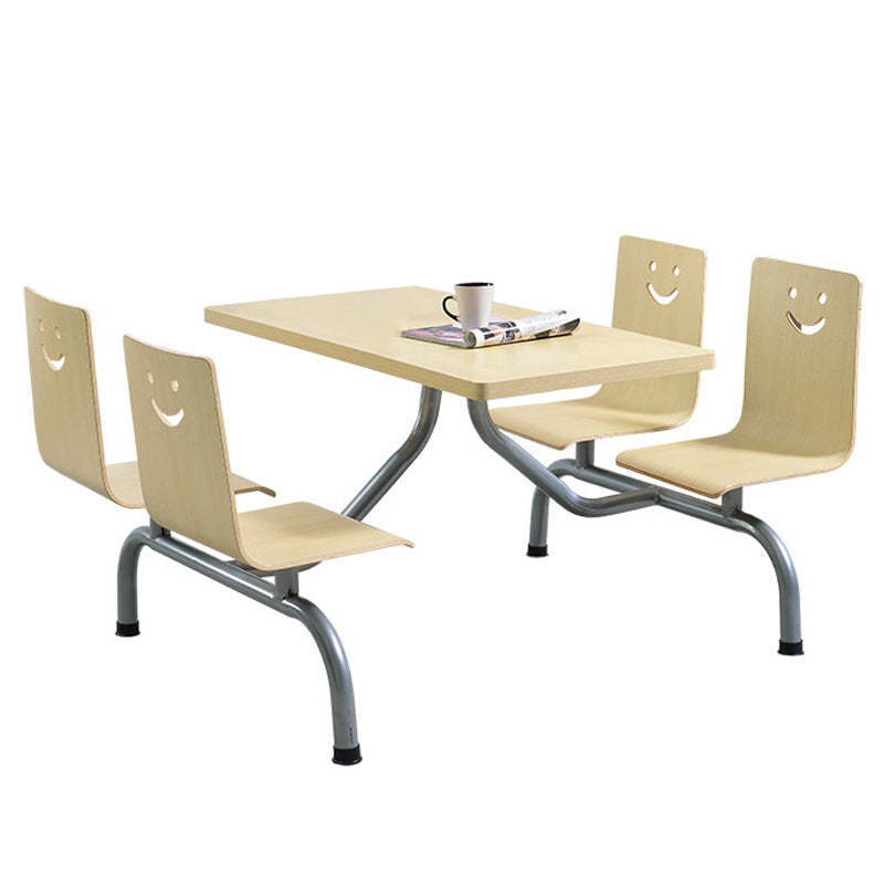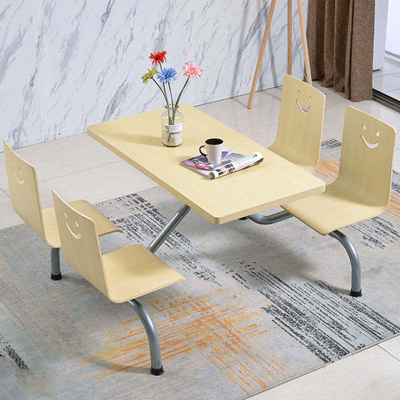 Modern Simplicity Wood Hardware Rectangular Smile One-piece Dining Table & Chair Set For 4 Seats