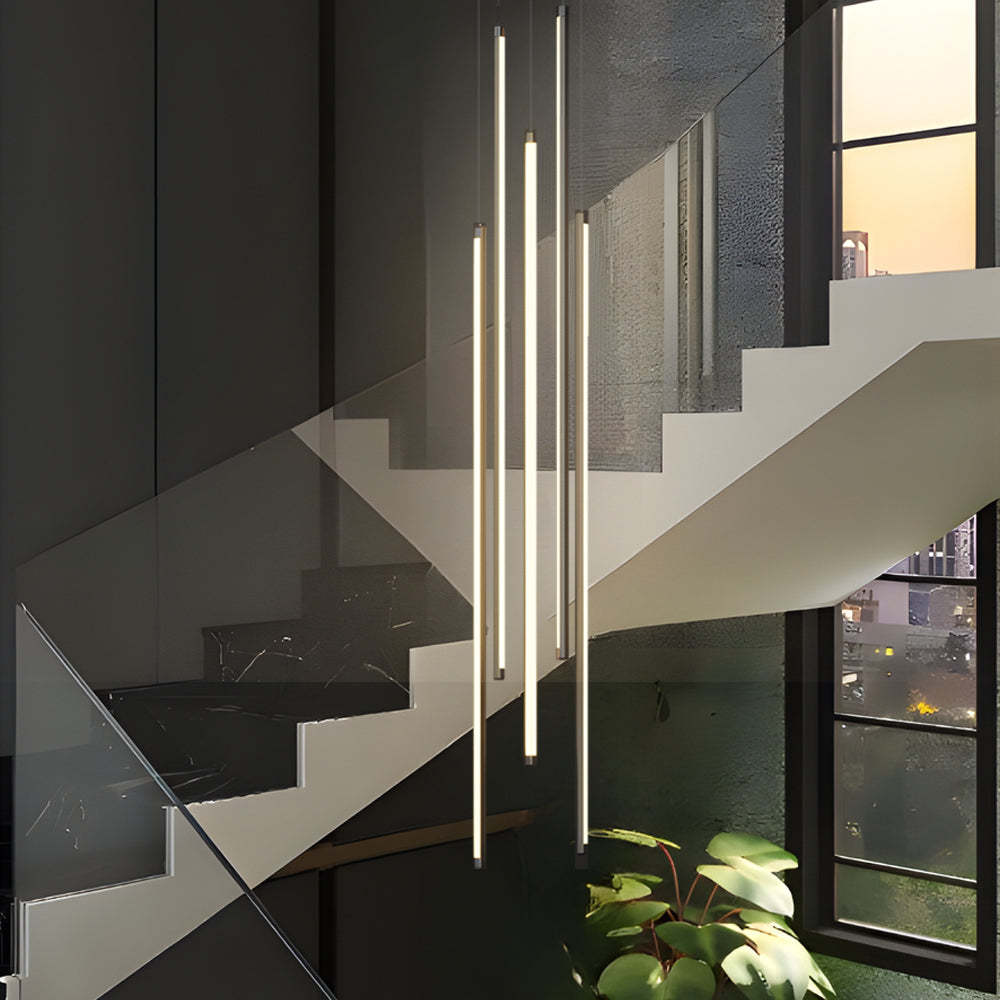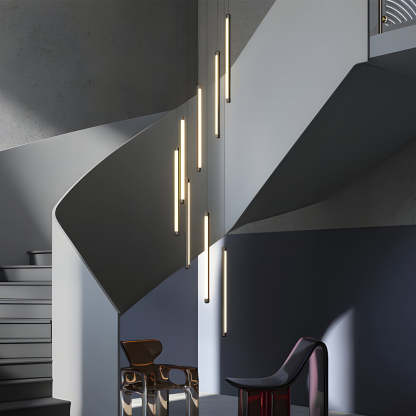 Modern Spiral Multi-Strip Chandelier for Staircases