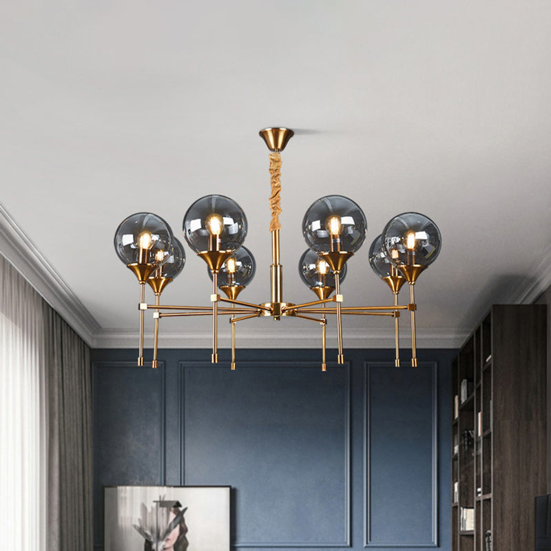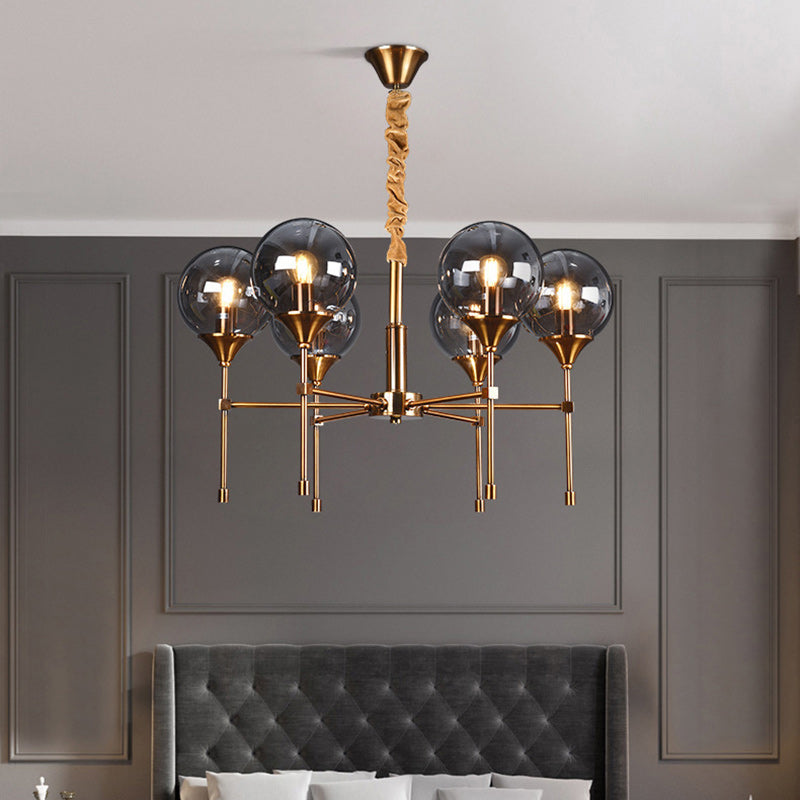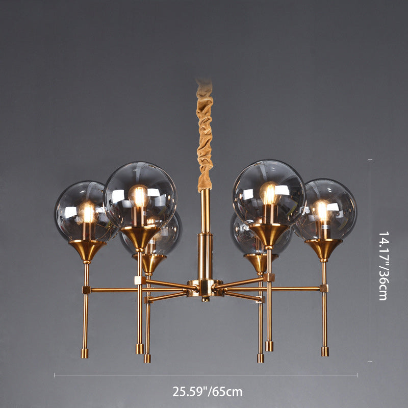Modern Transitional Elegance Sphere Glass Iron 6/8 Light Chandelier For Living Room