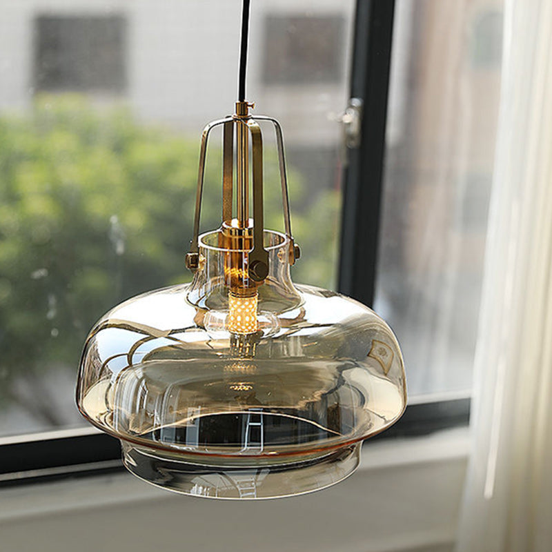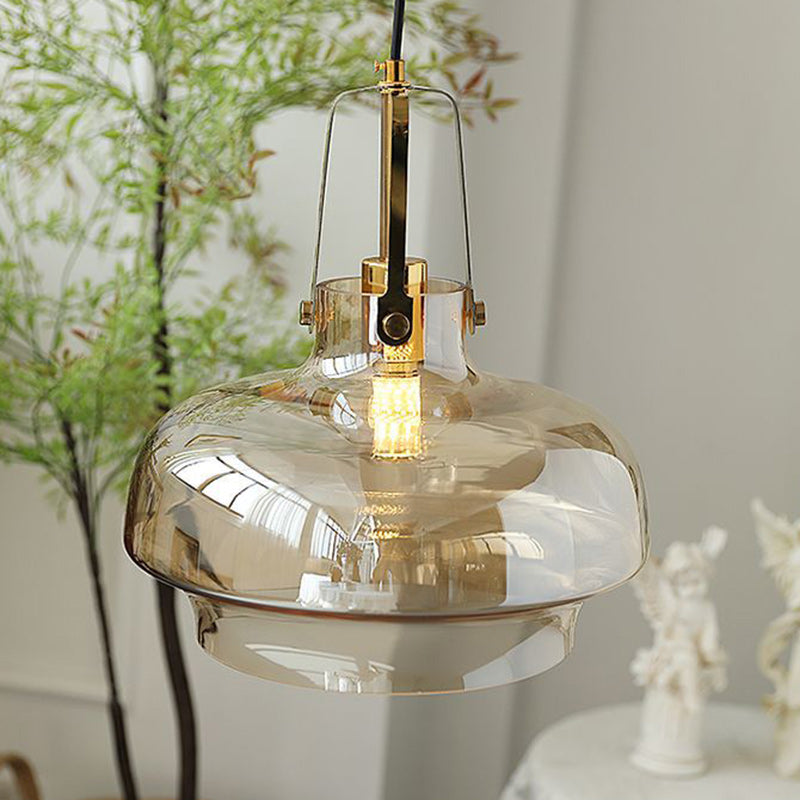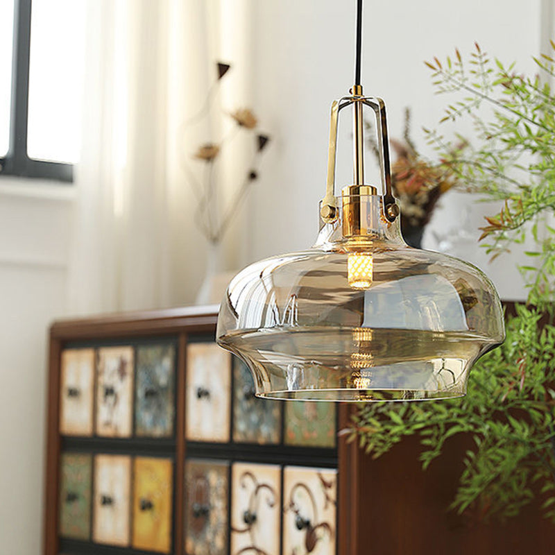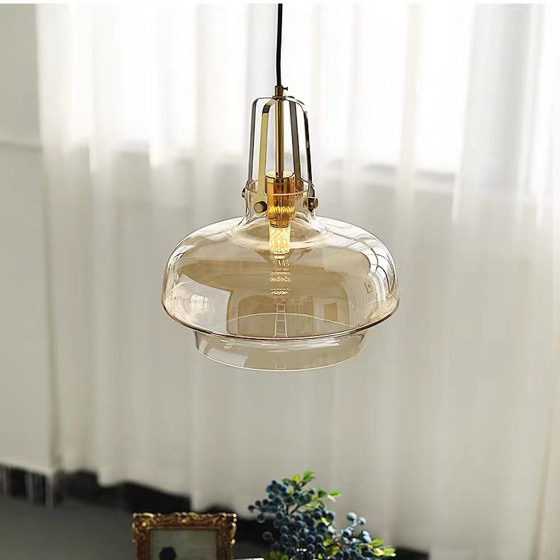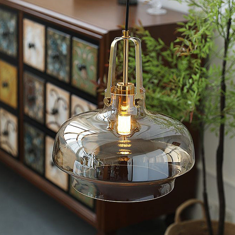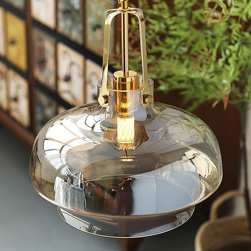 Modern Transitional Hardware Glass Round 1-Light Pendant Light For Dining Room