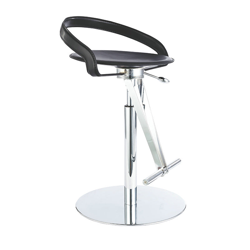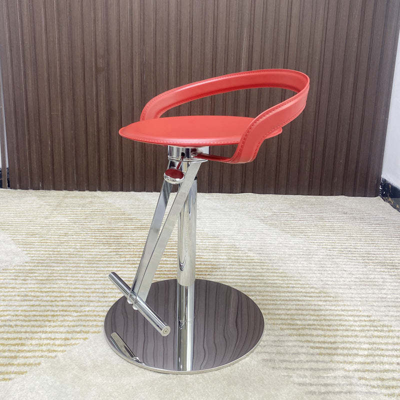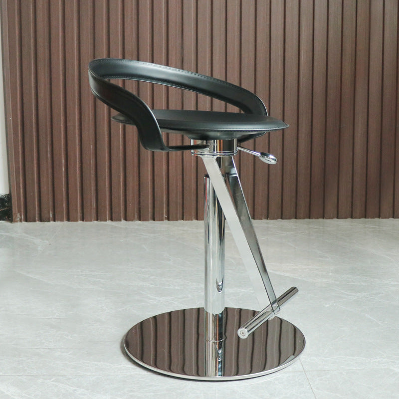 Modern Transitional Round Leather Stainless Steel Liftable Swivel Bar Stool Low Back Footrest For Dining Room