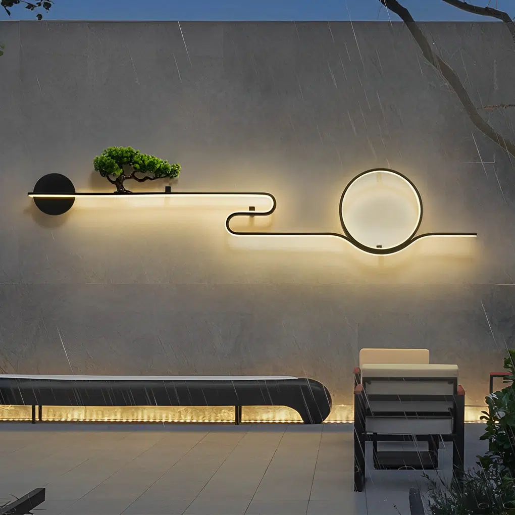 Moon Tree Scenery Waterproof LED Black Retro Outdoor Wall Lights Sconces