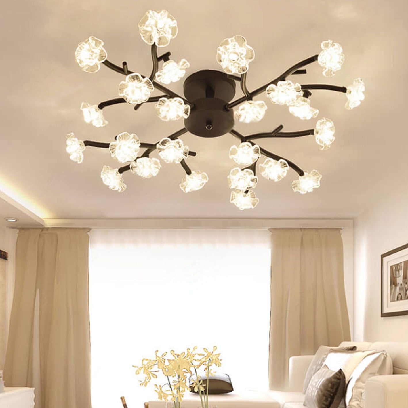 Nordic Creative Plum Blossom Tree Branch LED Semi-Flush Mount Ceiling Light