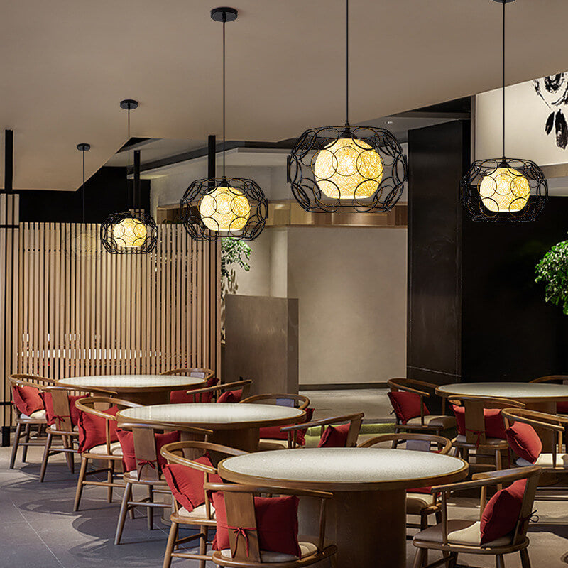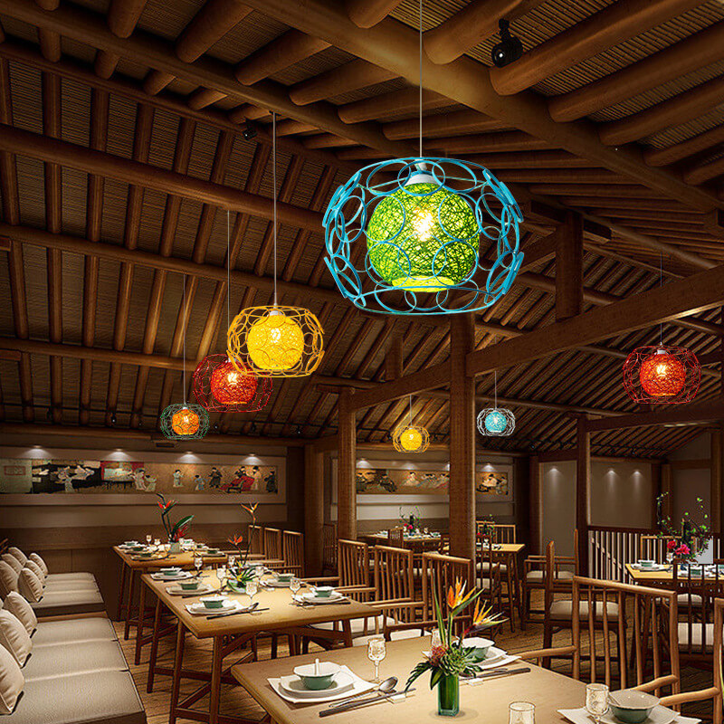 Nordic Creative Weaving Hemp Ball Iron Drum 1-Light Pendant Light