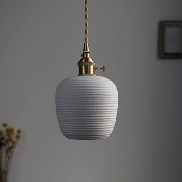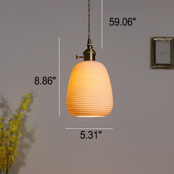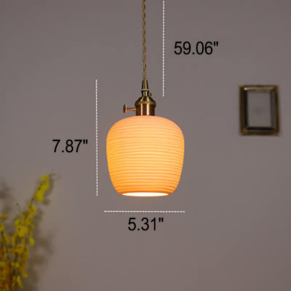 Nordic Japanese Ceramic Brass Oval 1-Light Pendant Light