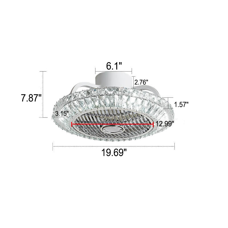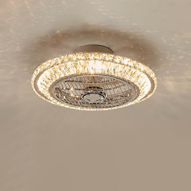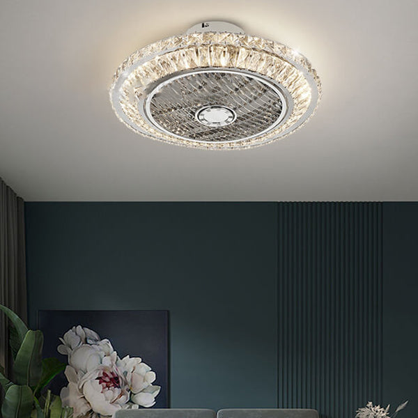 Nordic Simple Crystal Round Frame Design LED Flush Mount Ceiling Fan Light