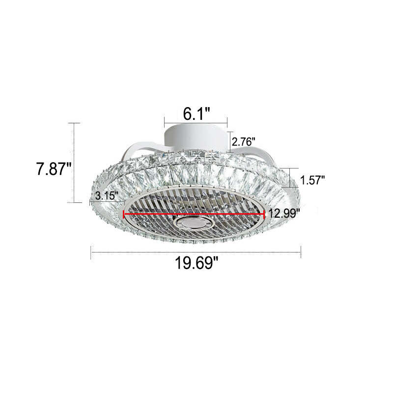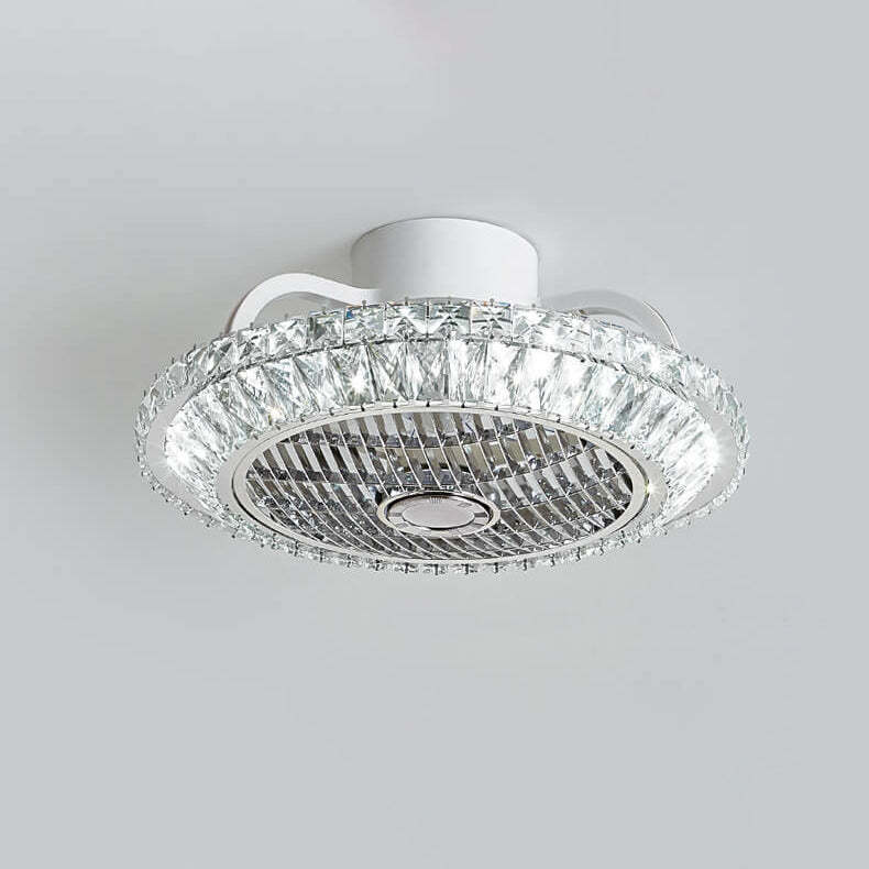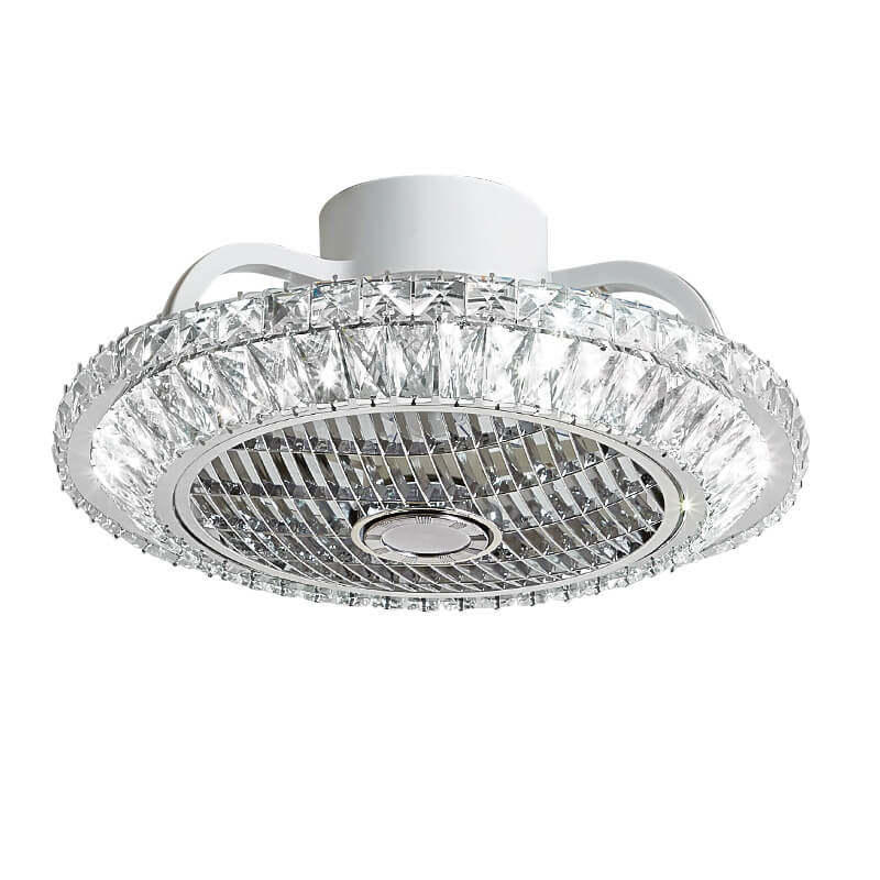 Nordic Simple Crystal Round Frame Design LED Flush Mount Ceiling Fan Light