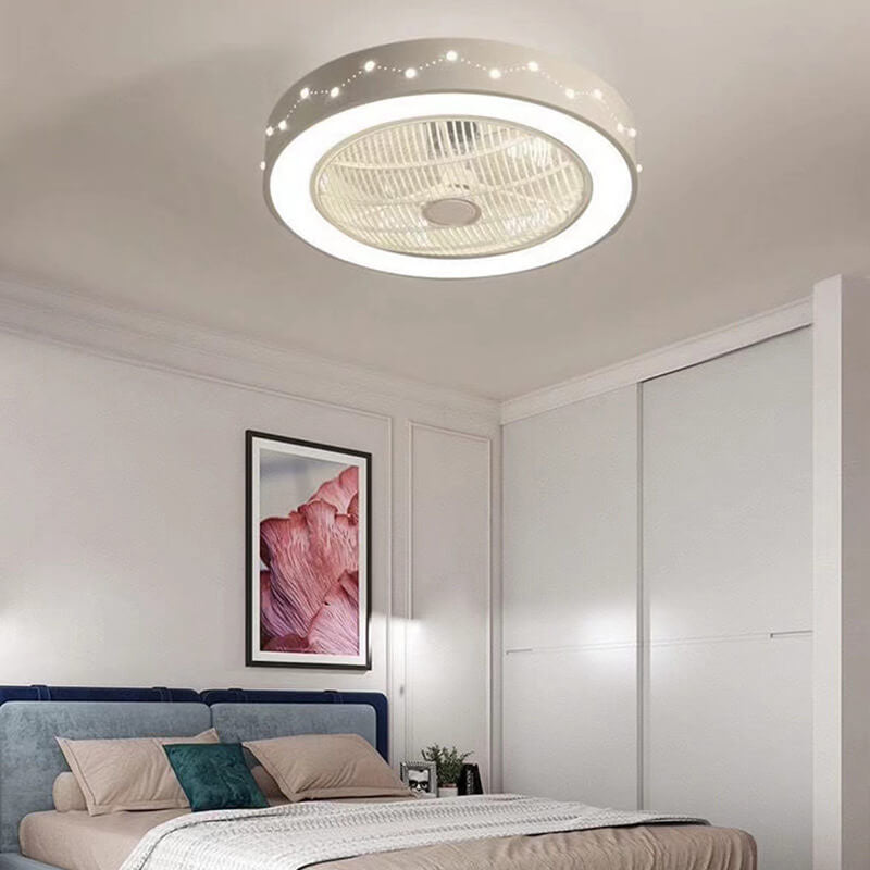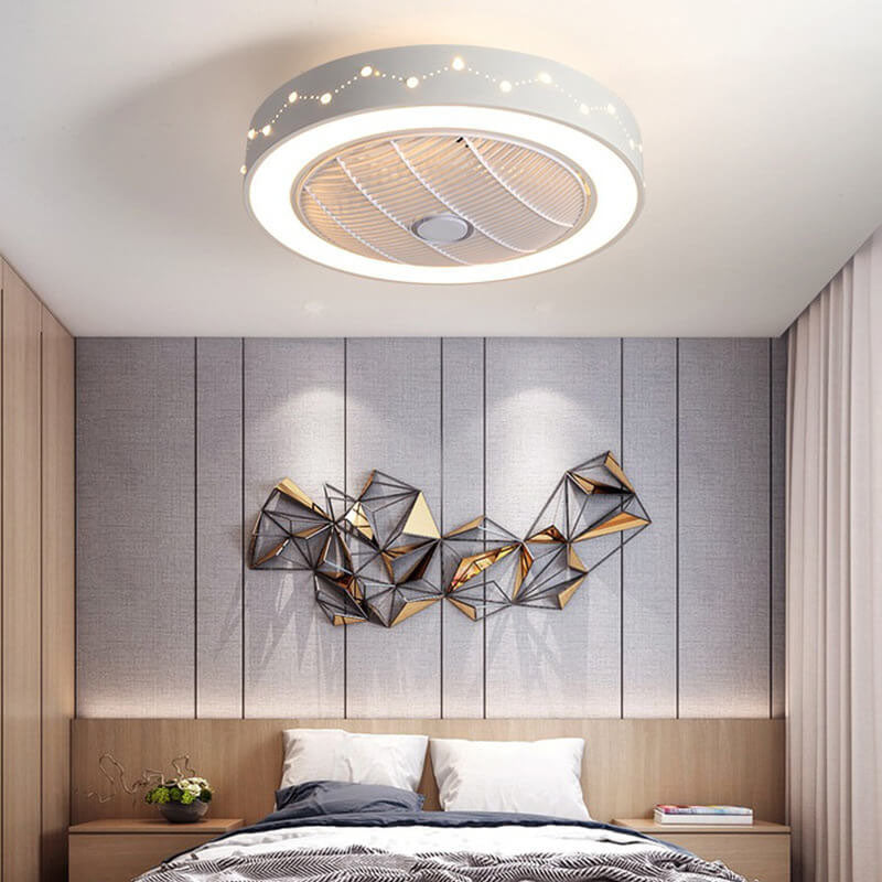 Nordic Simple Round Galaxies Enclosed LED Flush Mount Ceiling Fan Light
