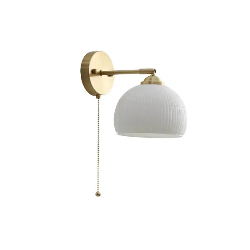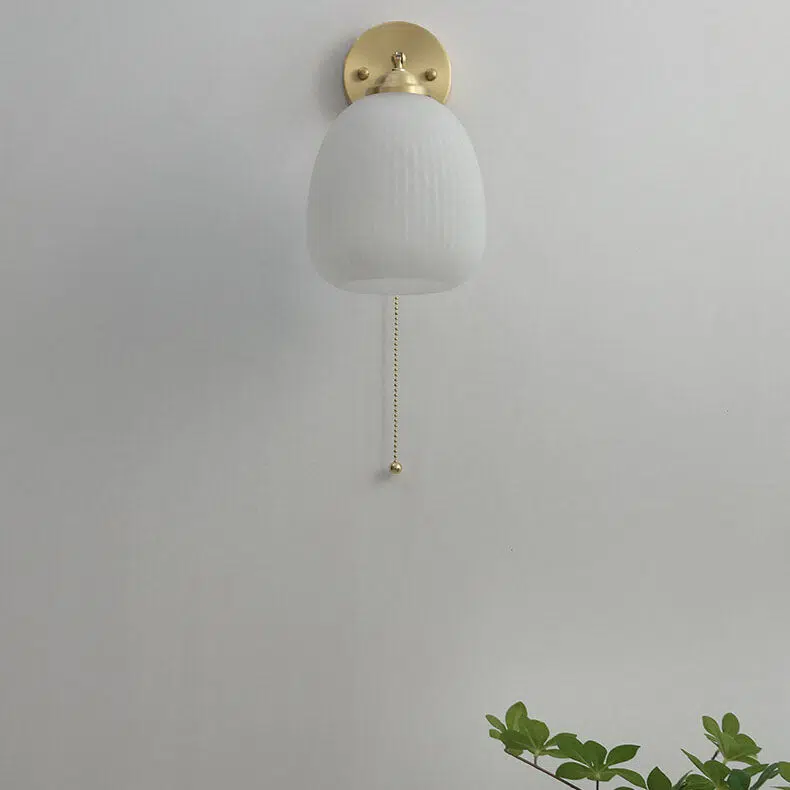 Nordic Striped Milk White Glass Brass 1-Light Pull Cord Wall Sconce Lamp