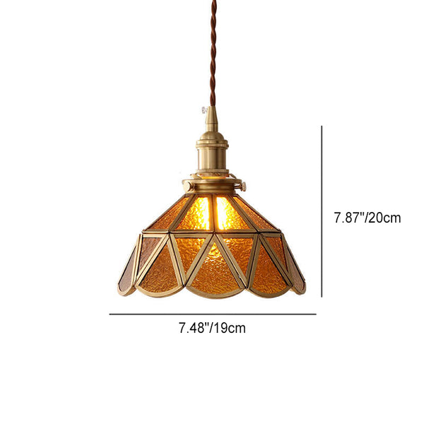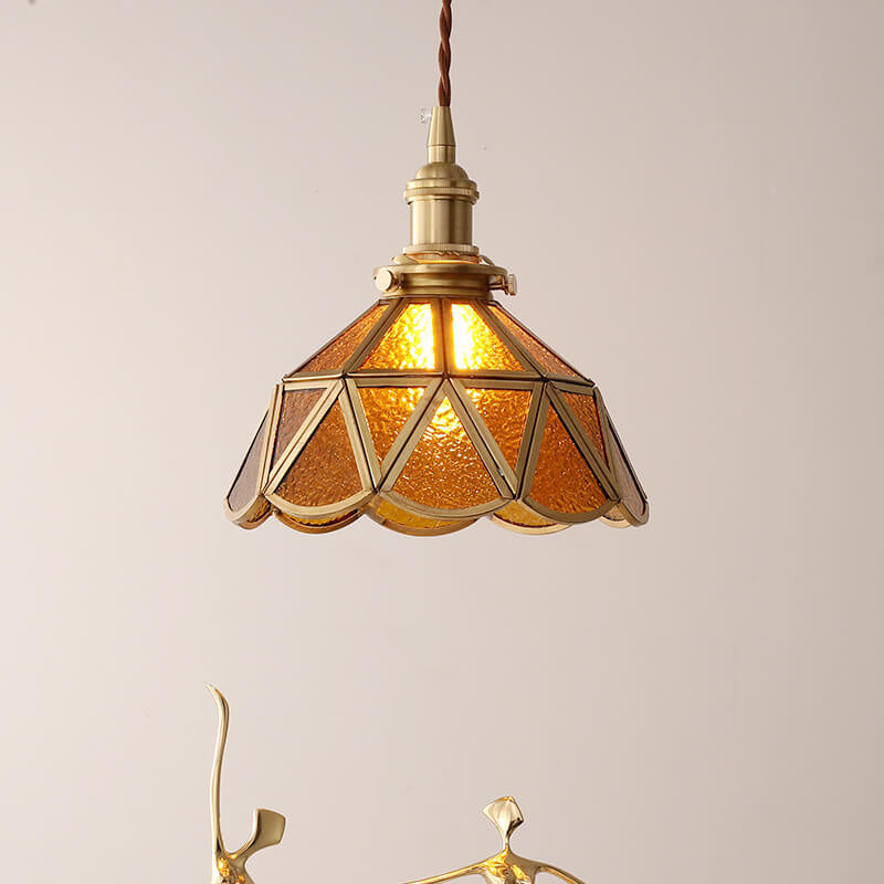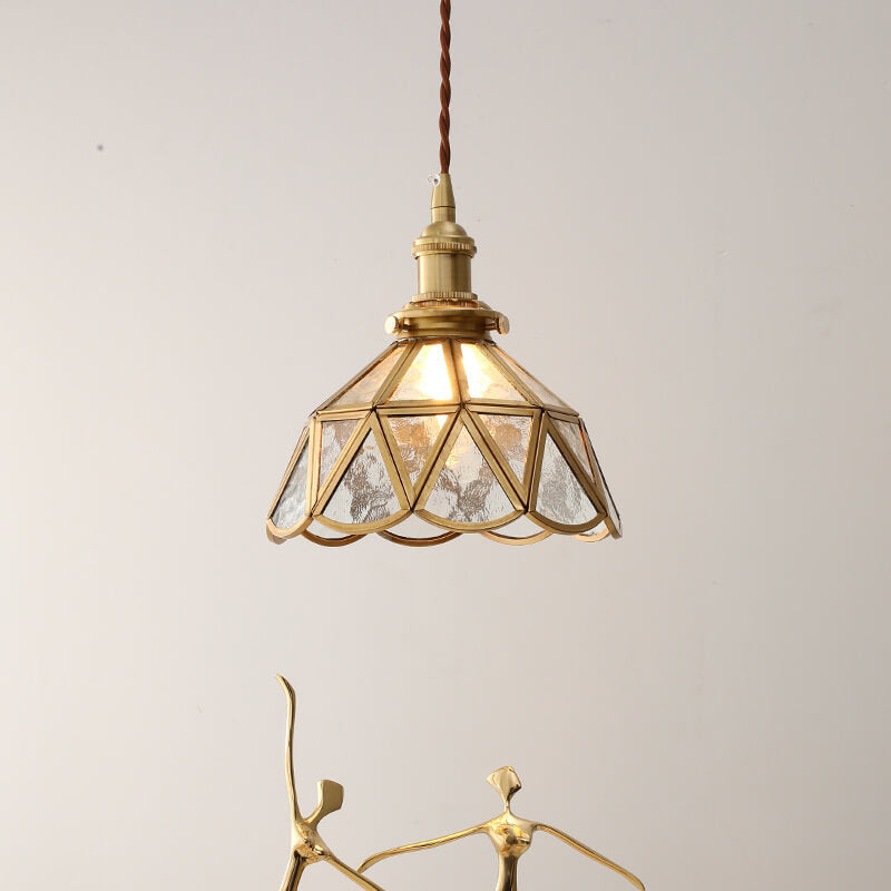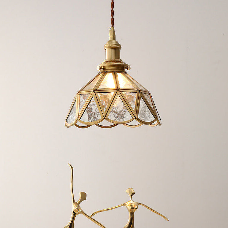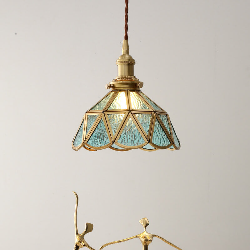 Nordic Vintage Water Pattern Glass Geometric Cone Brass 1-Light Pendant Light