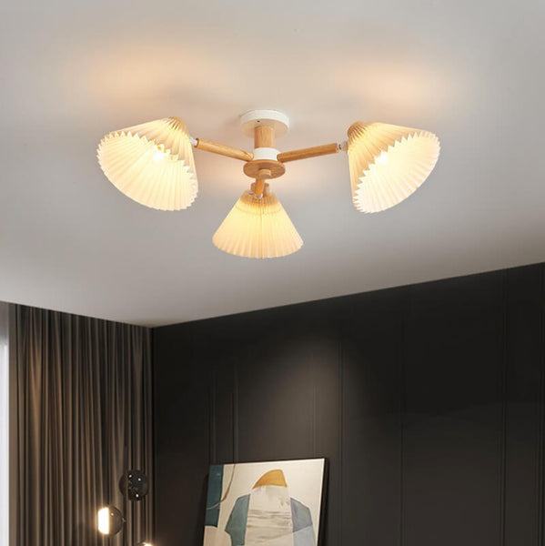 Nordic Wood Pleated Shade 3/6/8 Light Semi-Flush Mount Ceiling Light