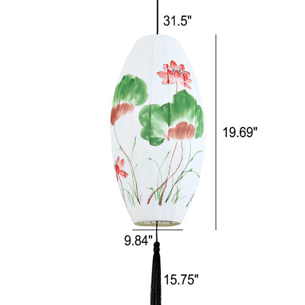 Oriental Antique Handmade Oval Lantern Fabric 1-Light Pendant Light