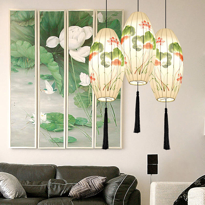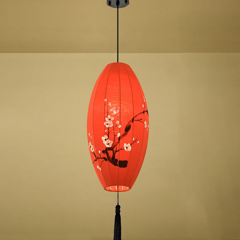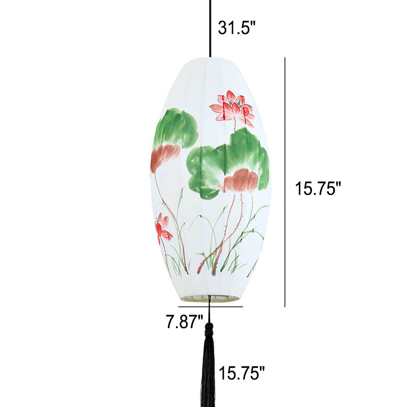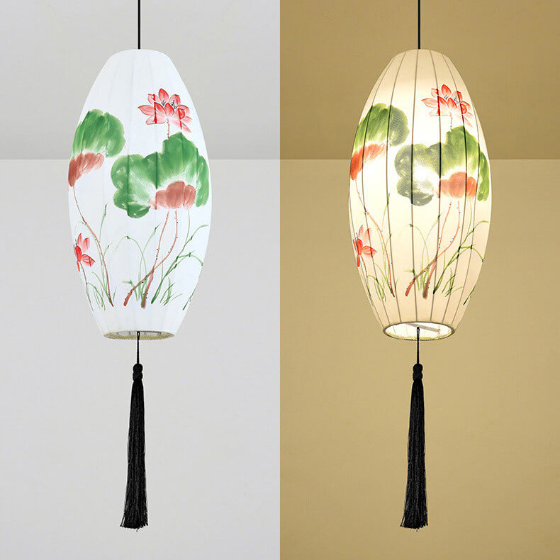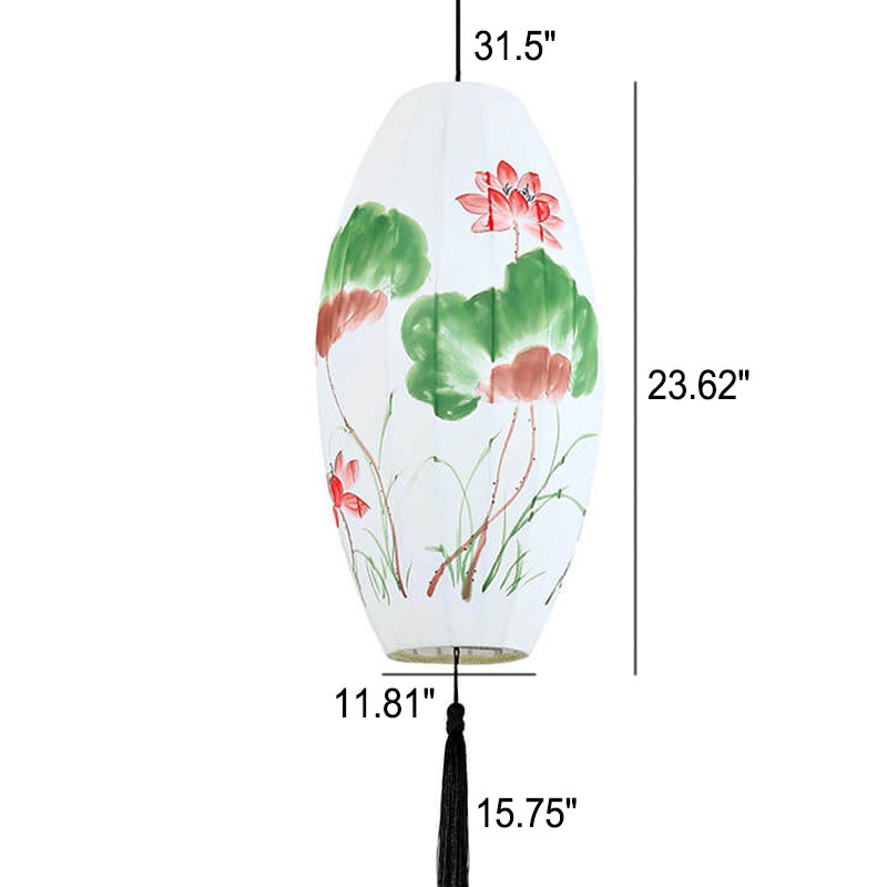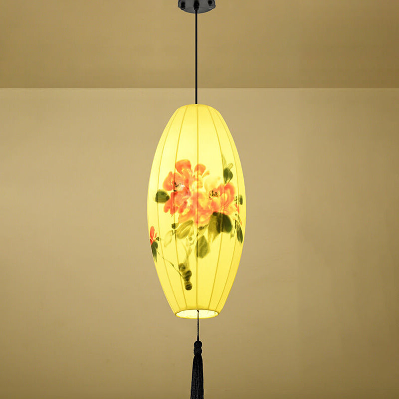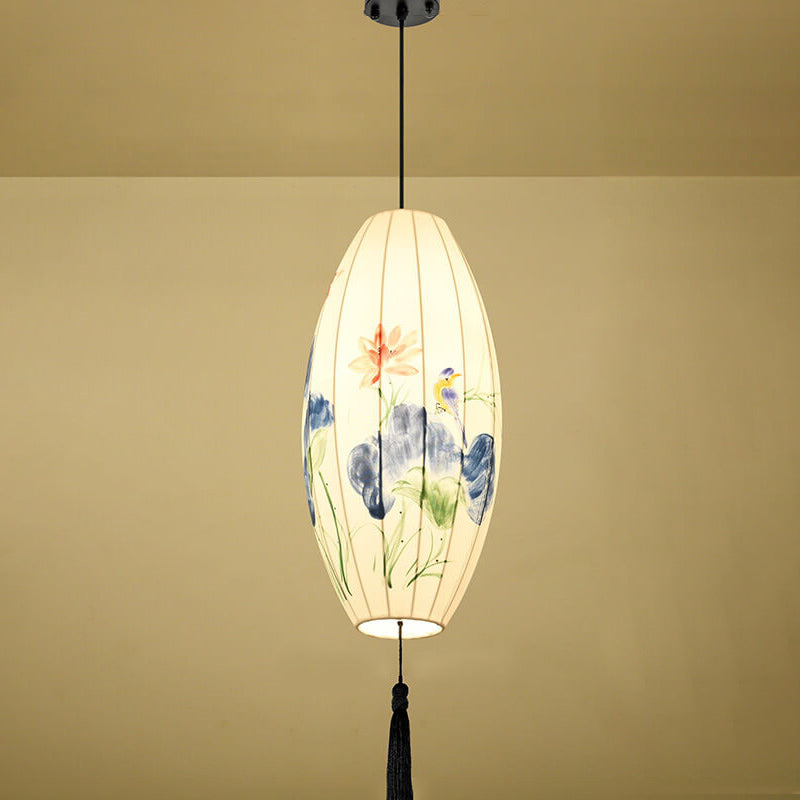 Oriental Antique Handmade Oval Lantern Fabric 1-Light Pendant Light