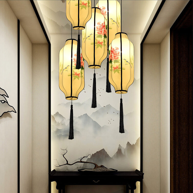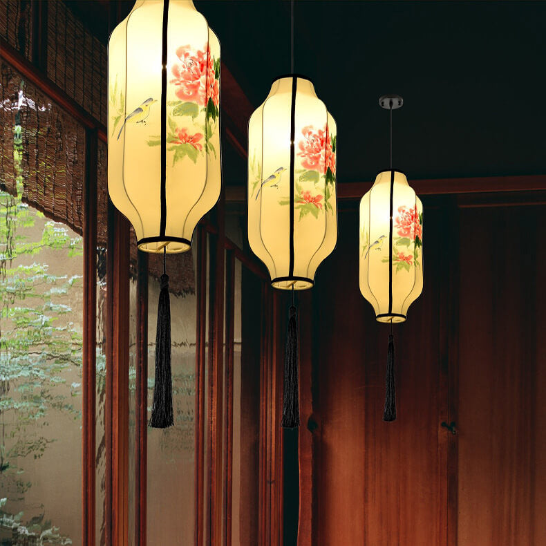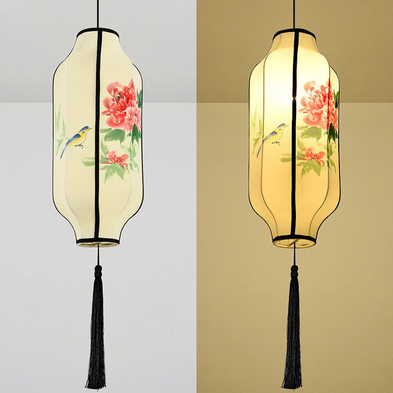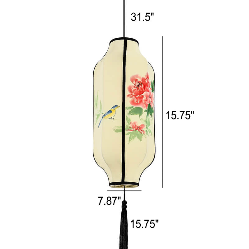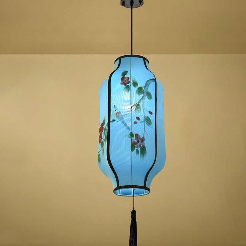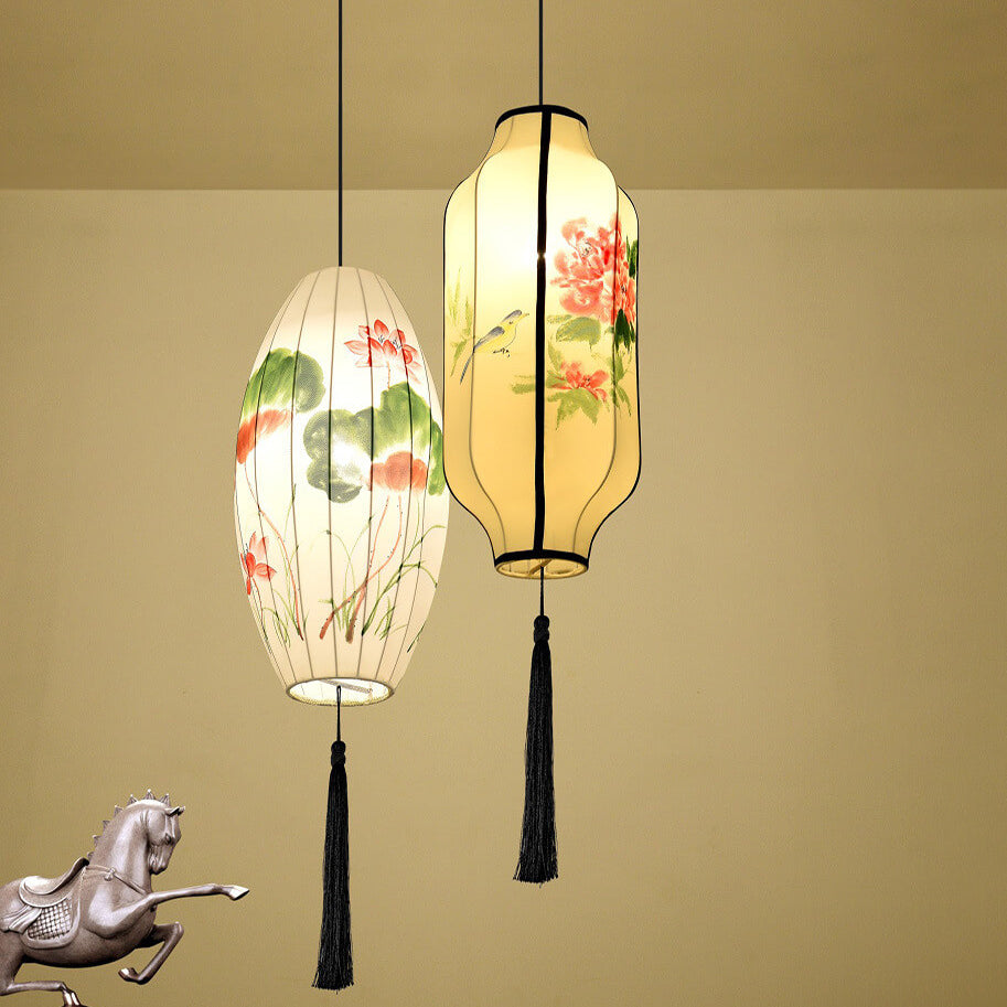 Oriental Antique Handmade Oval Lantern Fabric 1-Light Pendant Light