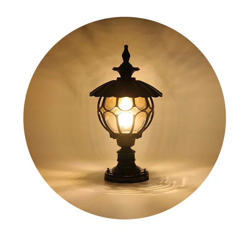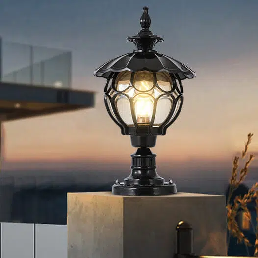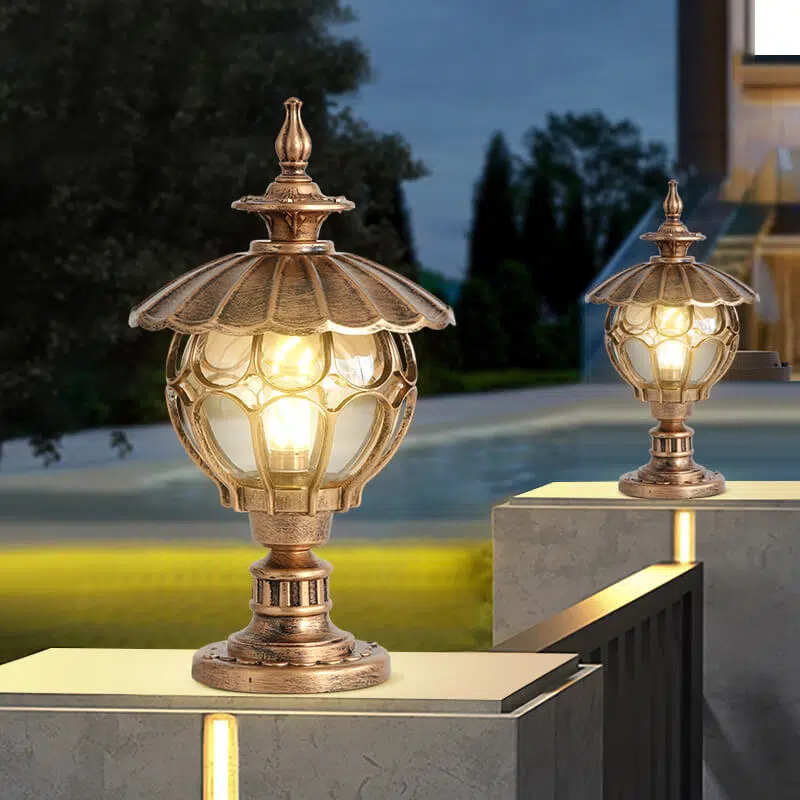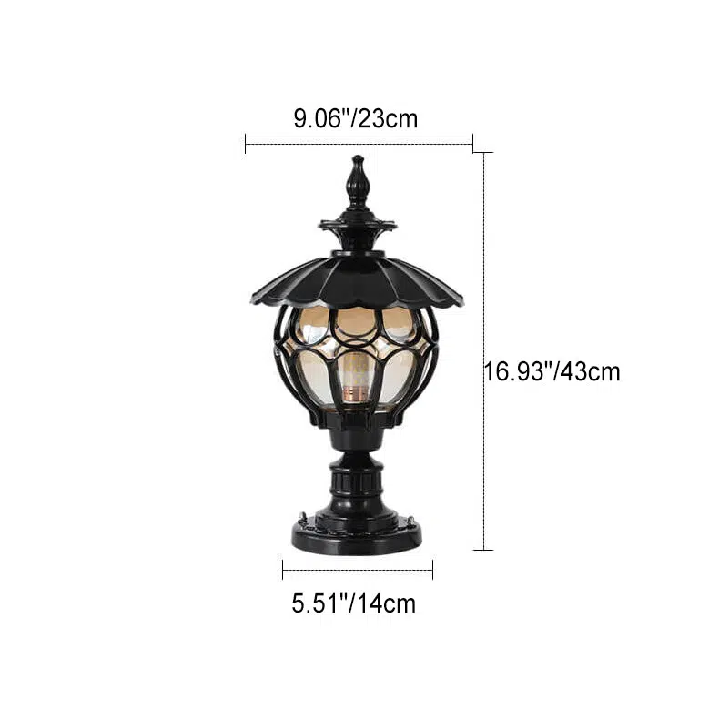 Outdoor European Round Column Head Light 1-Light Waterproof Garden Landscape Light