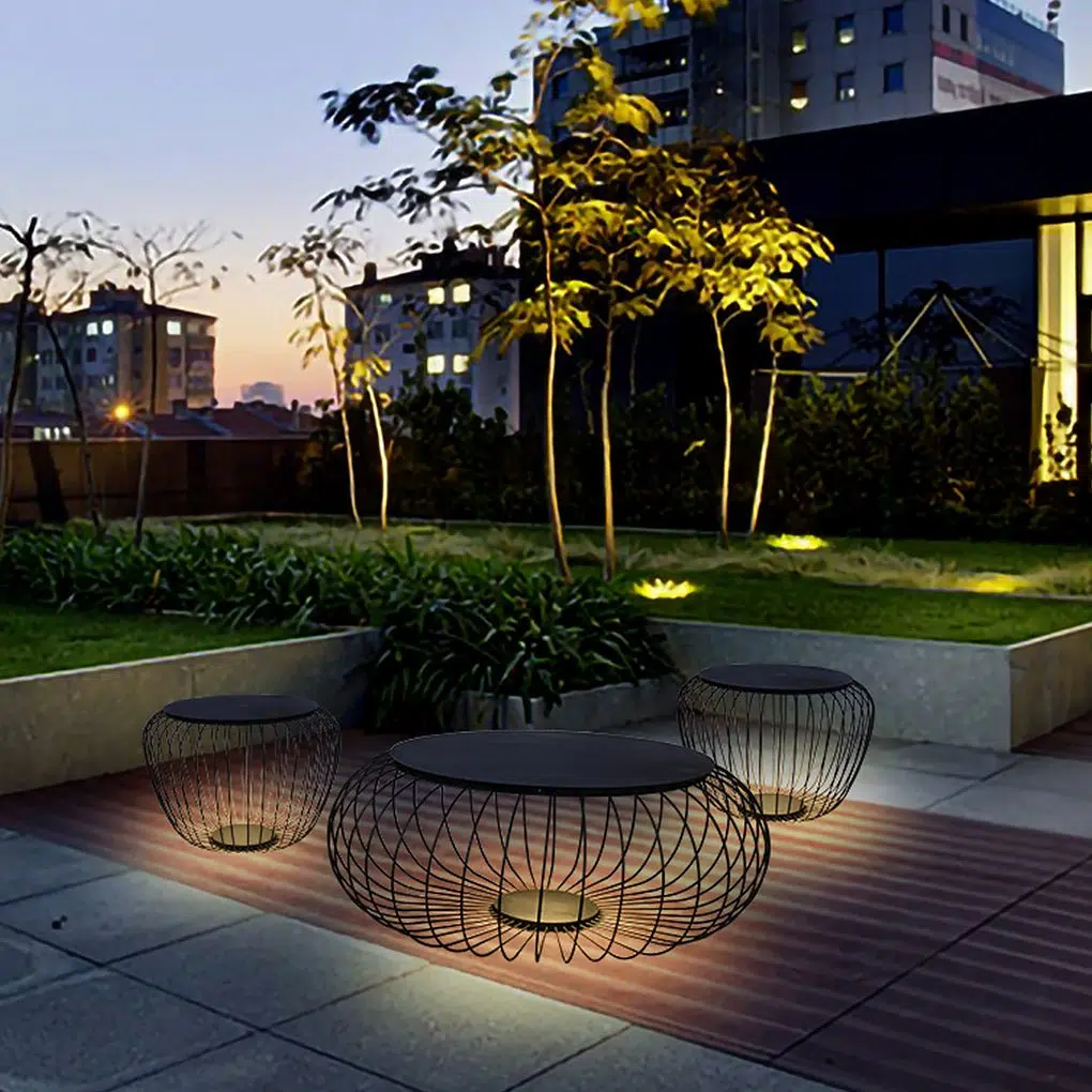 Outdoor Waterproof Cage Shape Stool Table Lamp LED Landscape Lighting Courtyard Lamp