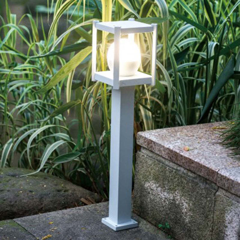 Outdoor Waterproof White Square Cage LED Patio Lawn Landscape Light