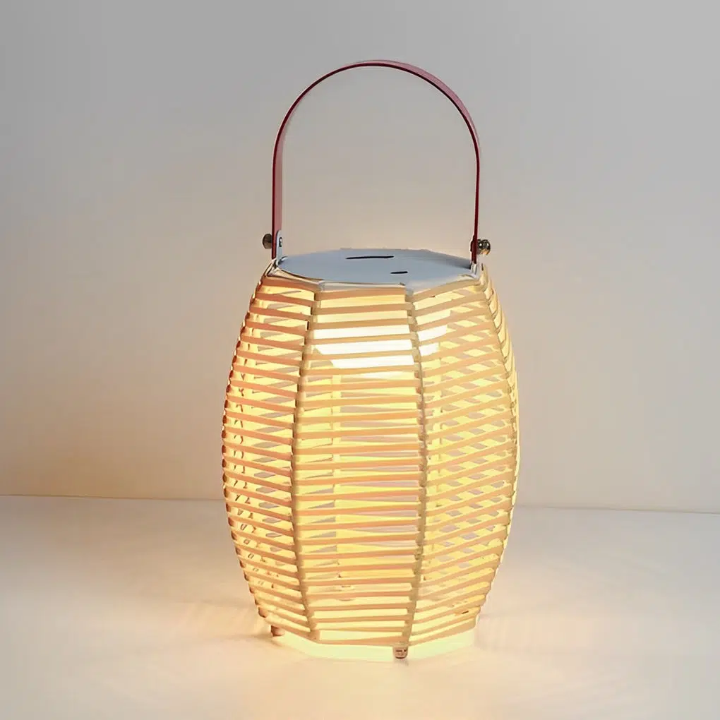 Portable Rattan Lantern Waterproof LED Modern Solar Outdoor Light Floor Lamp