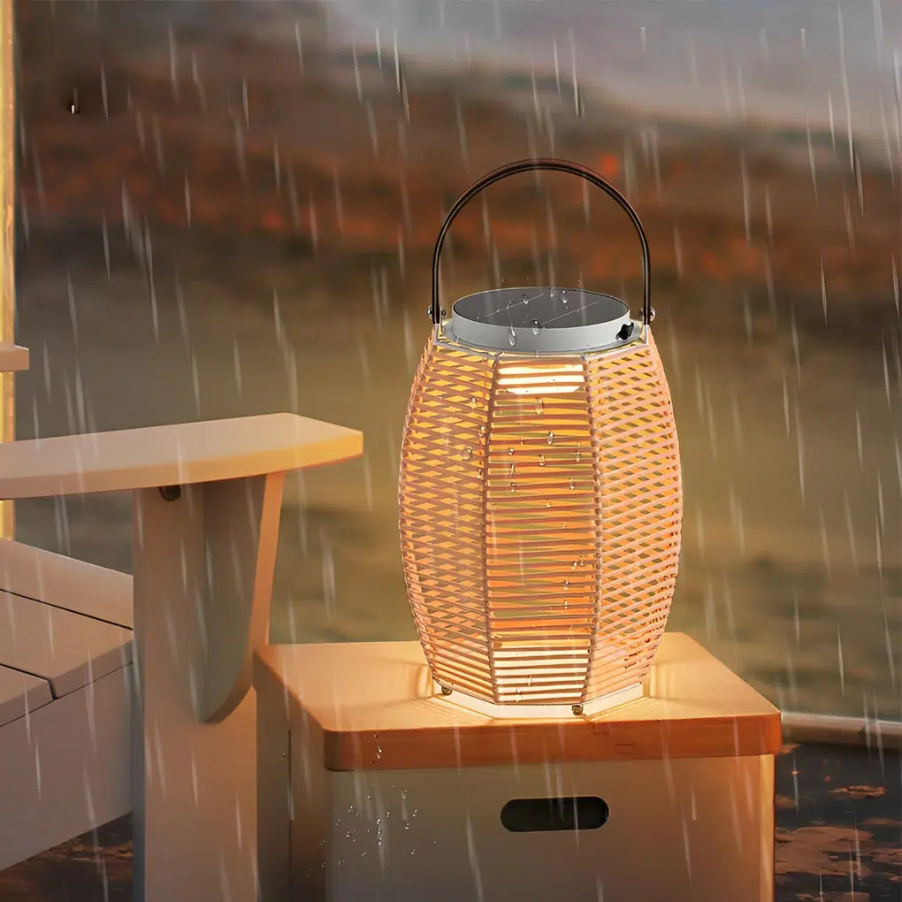Portable Rattan LED Waterproof Solar Powered Outdoor Lantern Lights
