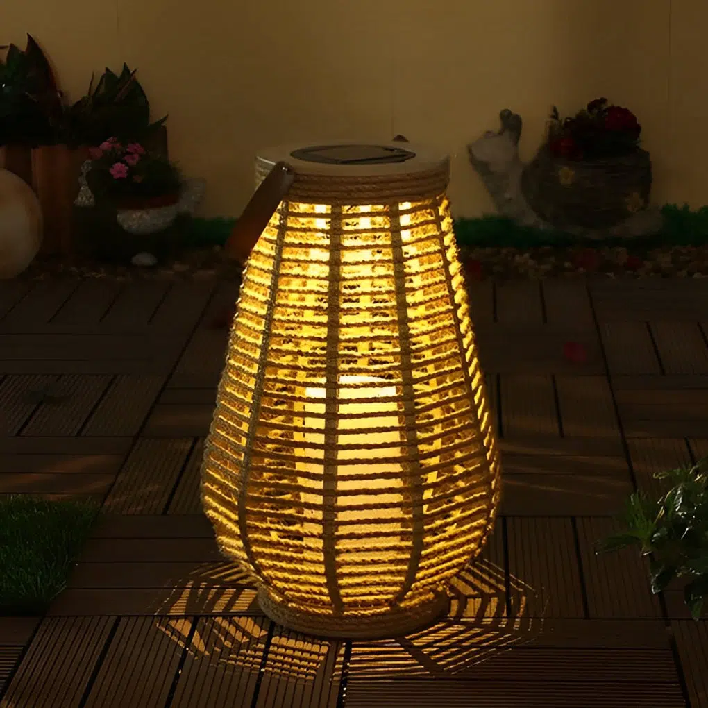 Portable Waterproof LED Ropes Rattan Brown Retro Outdoor Solar Lanterns