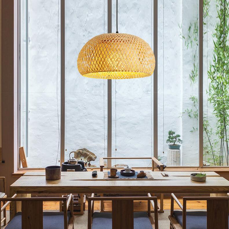 Rattan 1-Light Single Dome Shaped Pendant Light