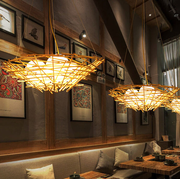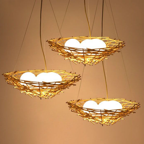 Rattan Weaving Bird Nest Shaped 3-Light Chandelier