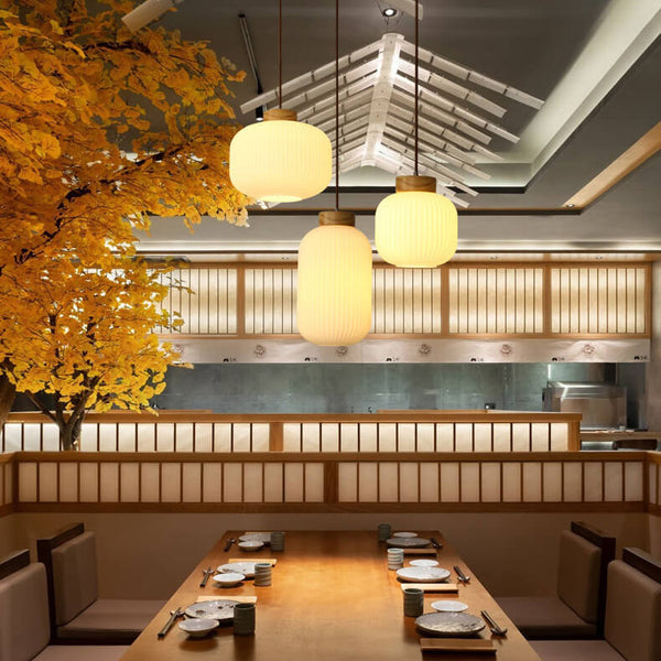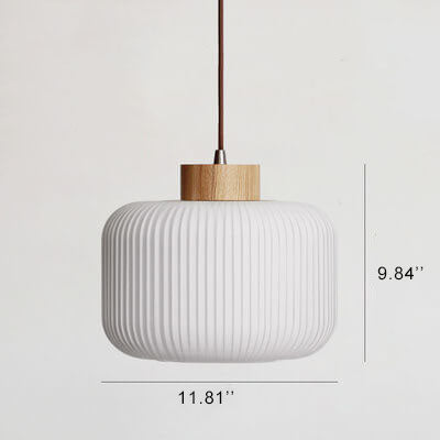 Retro White Striped Glass Jar 1-Light Japanese Pendant Light
