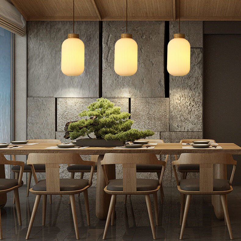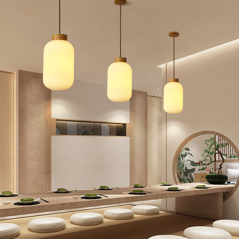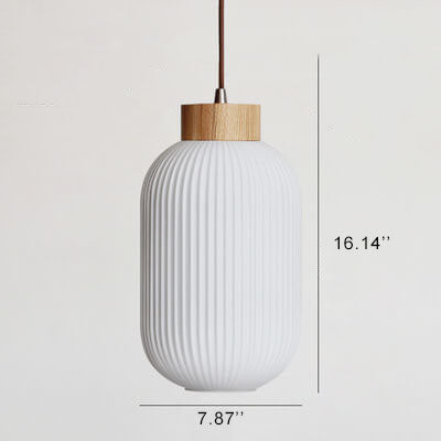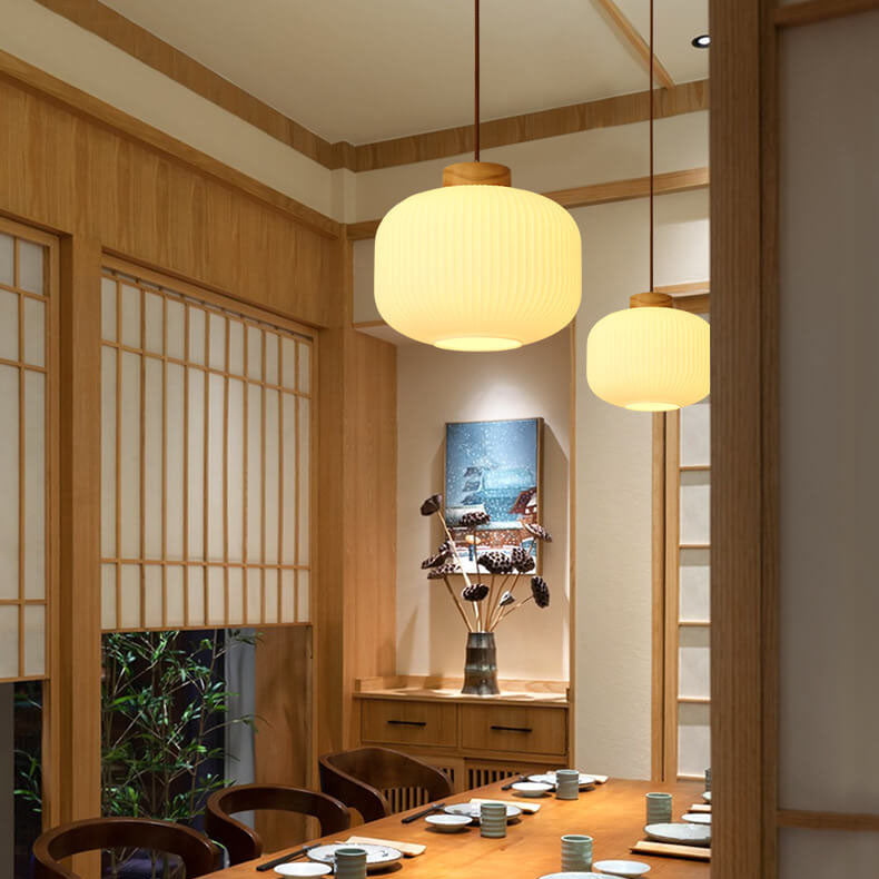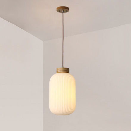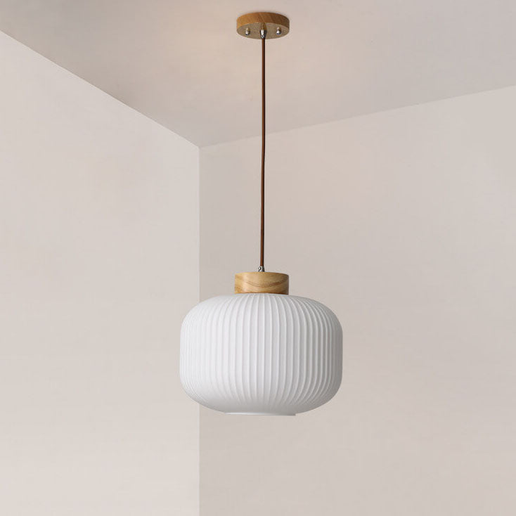 Retro White Striped Glass Jar 1-Light Japanese Pendant Light