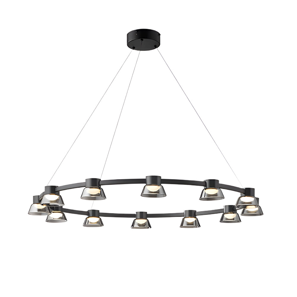 - Think ring to fill a design trend with this electroplated black and polished smoke-gray glass LED round pendant. The always attractive black metal frame creates an inviting look in this LED chandelier that is available in two shapes. a ring and a long linear design.