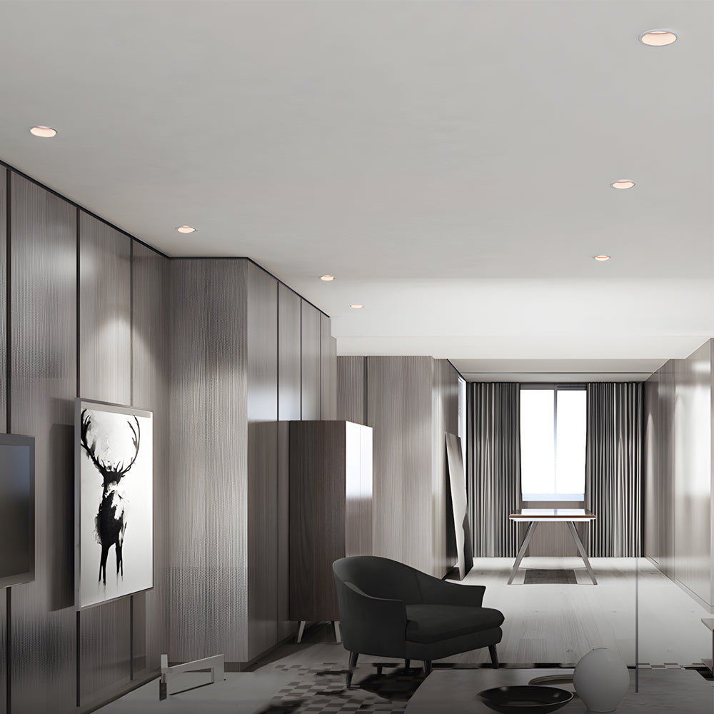 - Achieve energy efficiency in a recessed ceiling lighting system with this 3.3-inch round slim trim LED recessed downlight. Built-in non-dimmable 10-watt LED module. It offers four separate color temperatures and a 95-plus CRI. Constructed of white and black finish aluminum, this deep set trim provides area lighting while reducing glare.