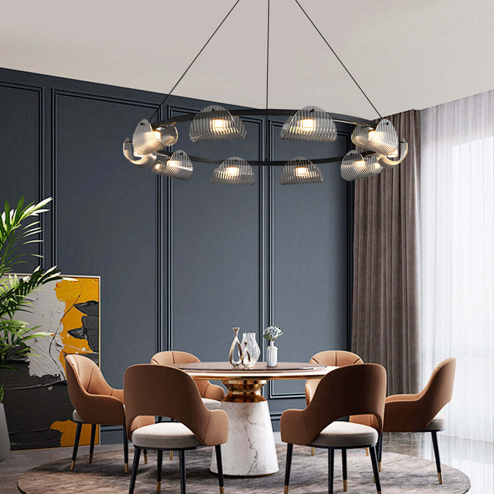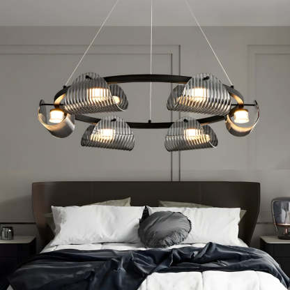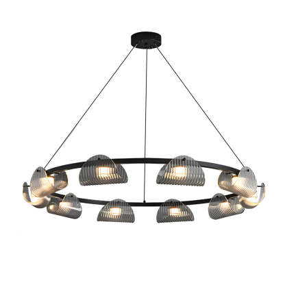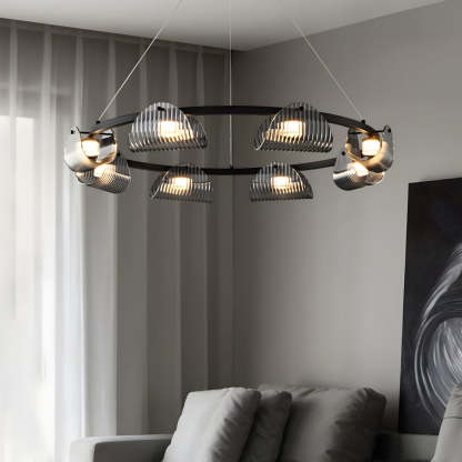 Round 6/8/10 Lights Curved Striped Glass LED Dimmable Nordic Chandelier
