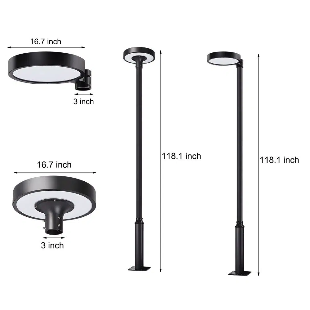 • There are post top lights (need to be used with light poles) and solar post lamps to choose from. These solar street lights charge automatically during the day and light up at night. and have long battery life. And it can also be controlled by remote control. the distance is about 196”-314”. and the remote can also control multiple lights at the same time.