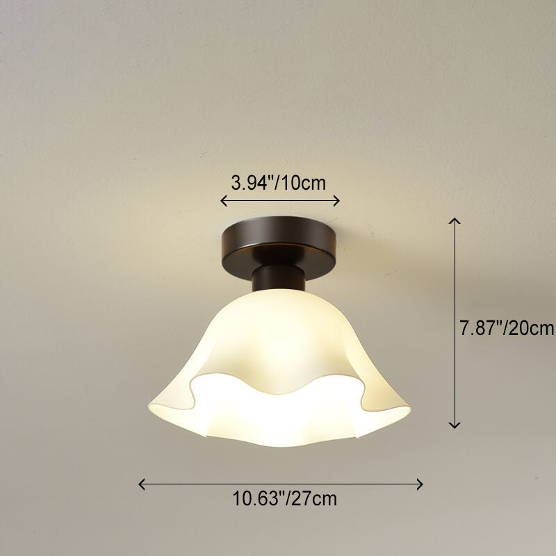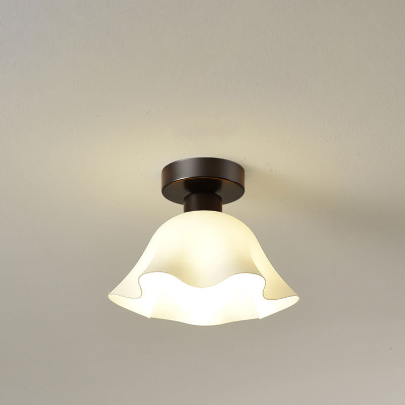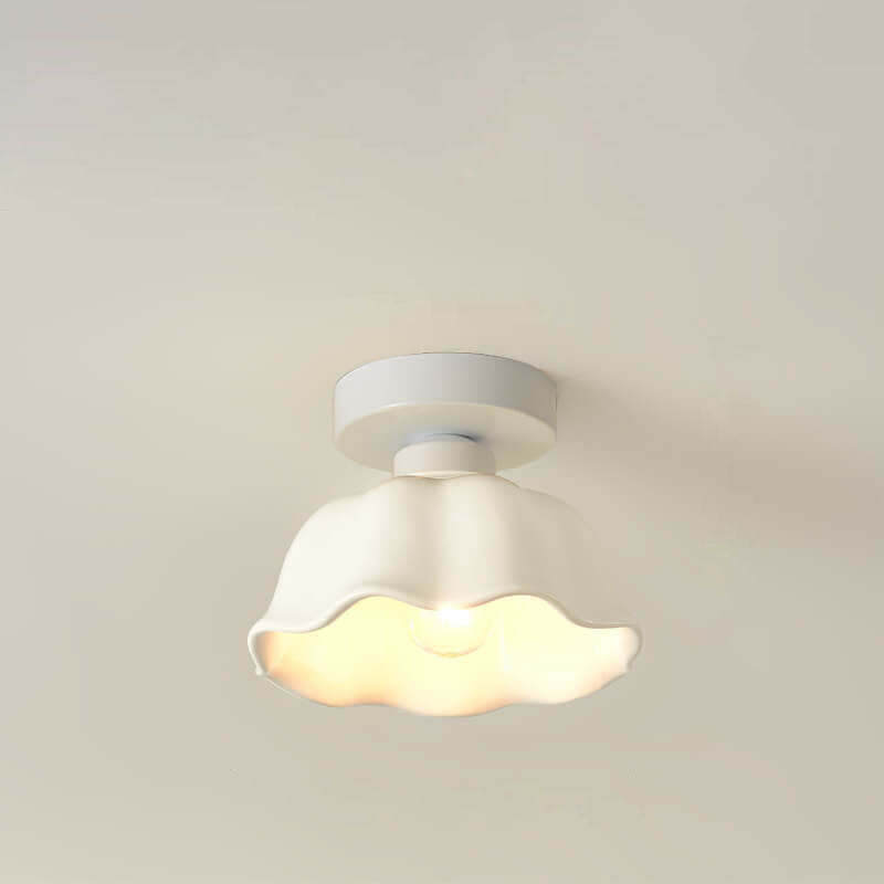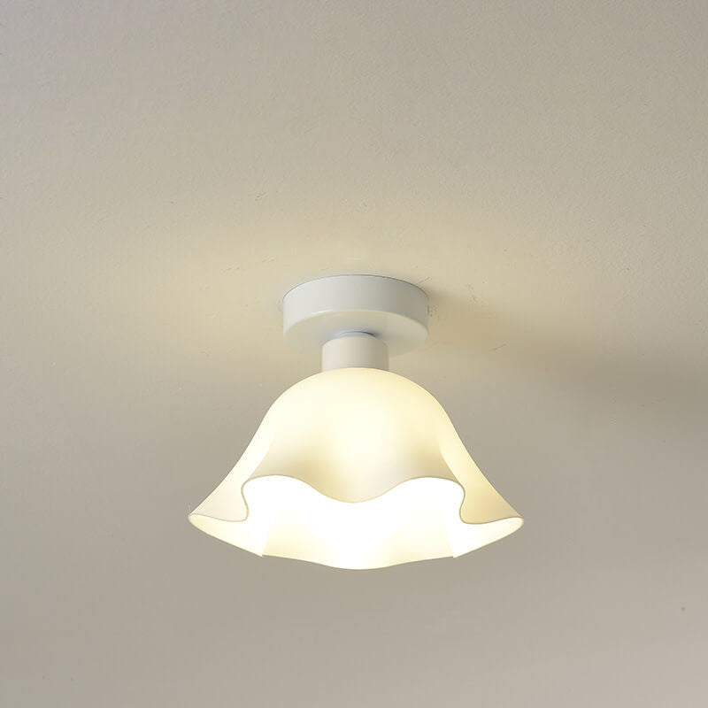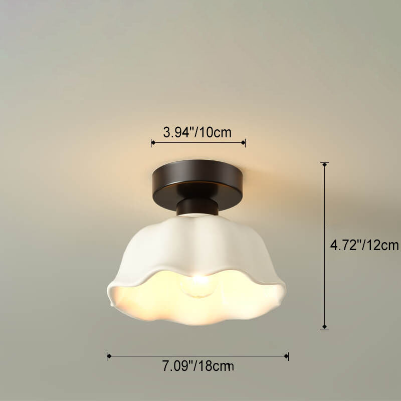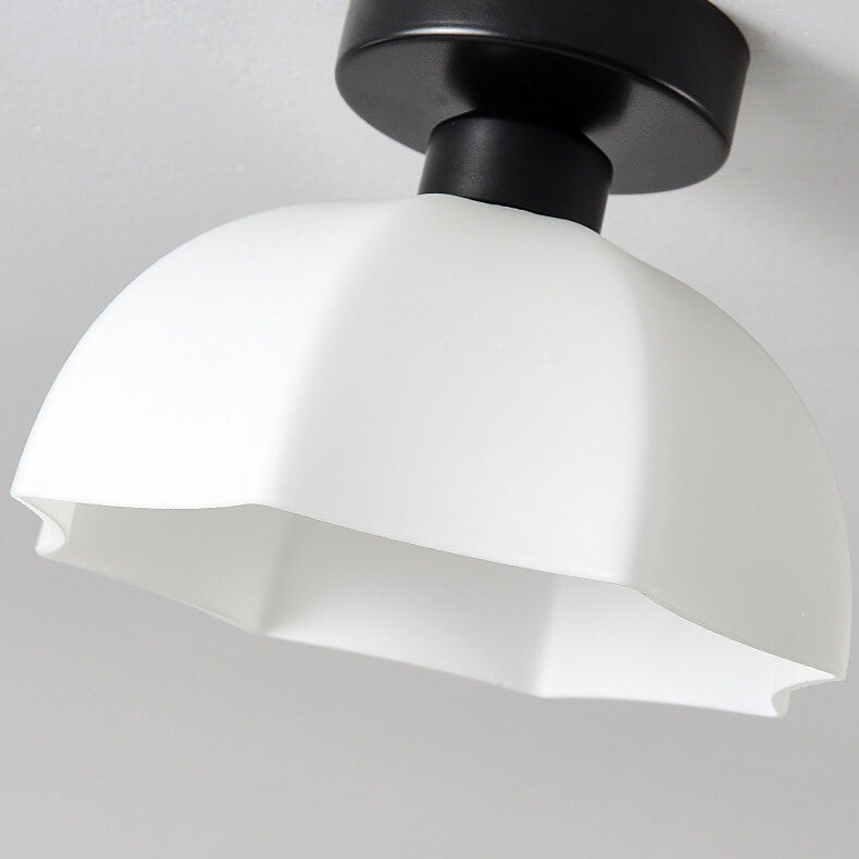 Scandinavian Modern Minimalist Iron Glass Ceramic Flower Diamond 1-Light Semi-Flush Mount Ceiling Light