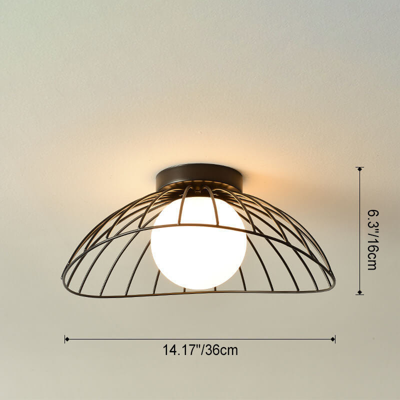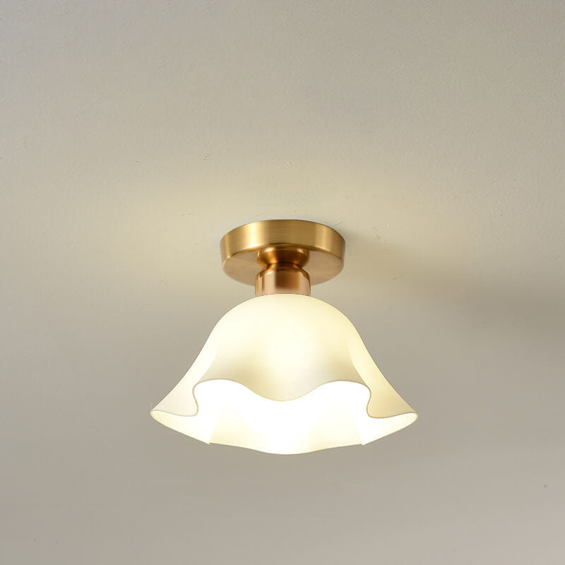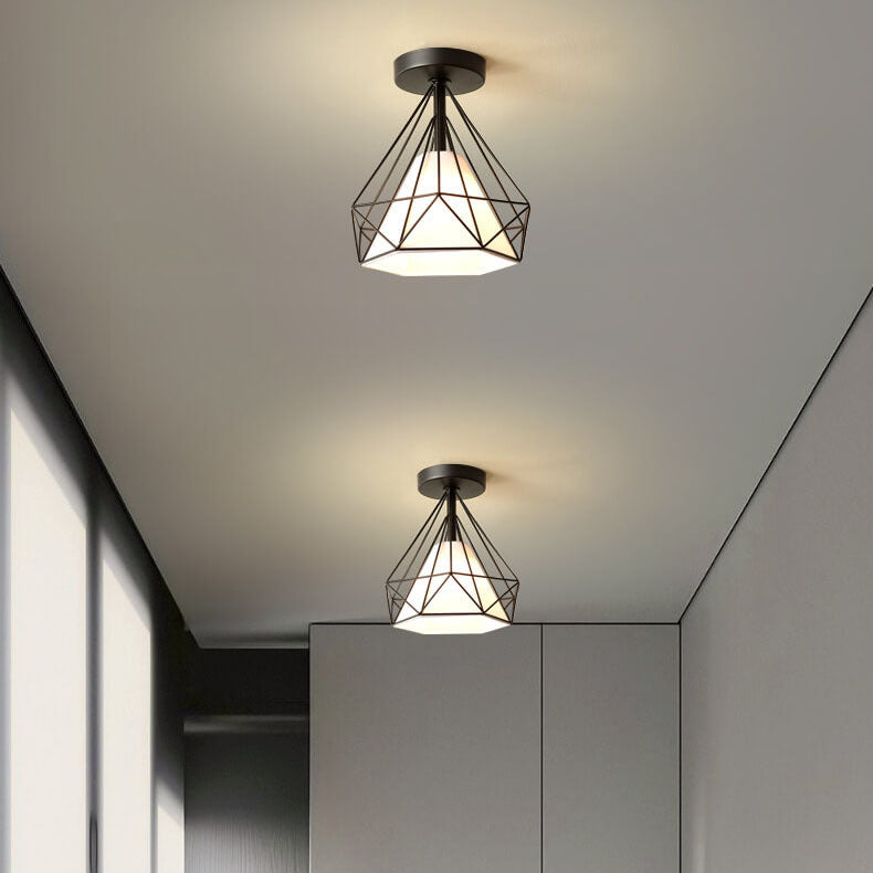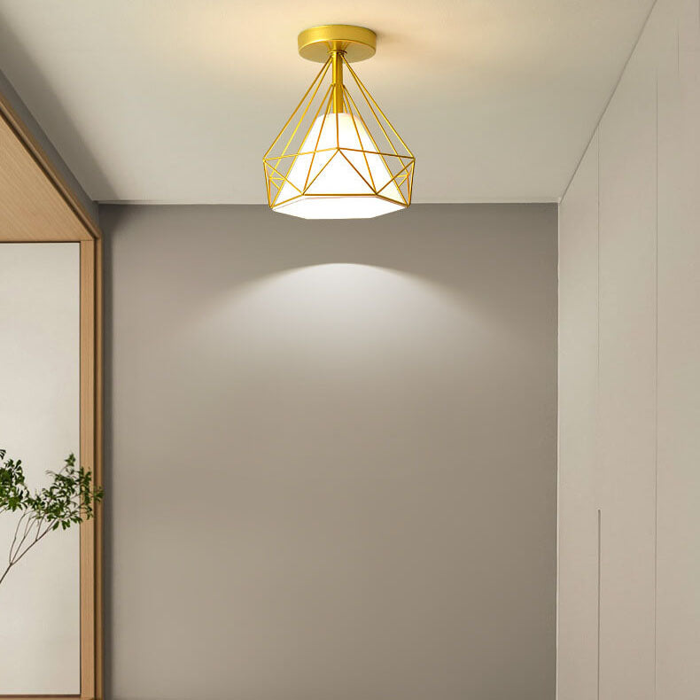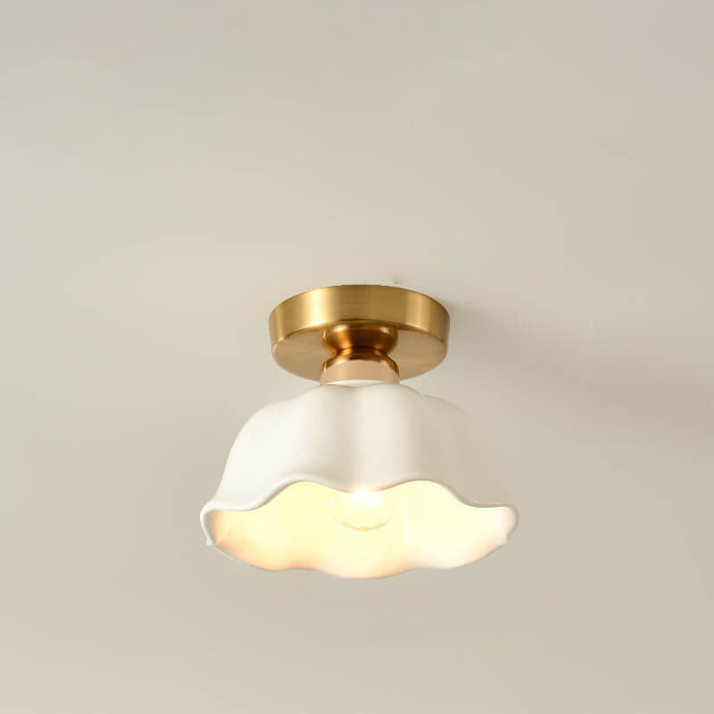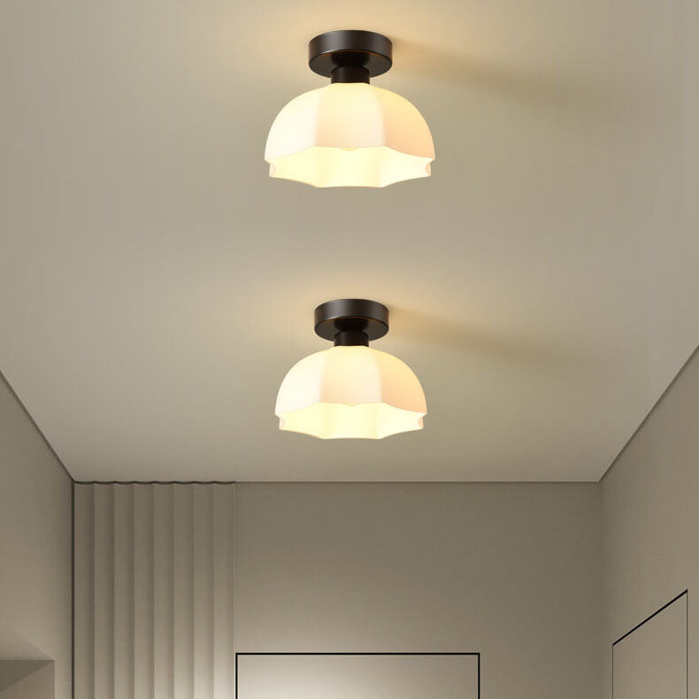 Scandinavian Modern Minimalist Iron Glass Ceramic Flower Diamond 1-Light Semi-Flush Mount Ceiling Light