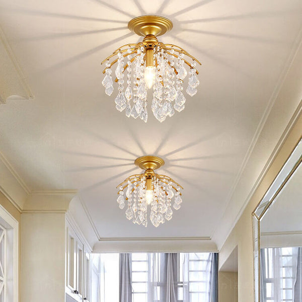 Scandinavian Modern Round Iron Crystal 1-Light Semi-Flush Mount Ceiling Light