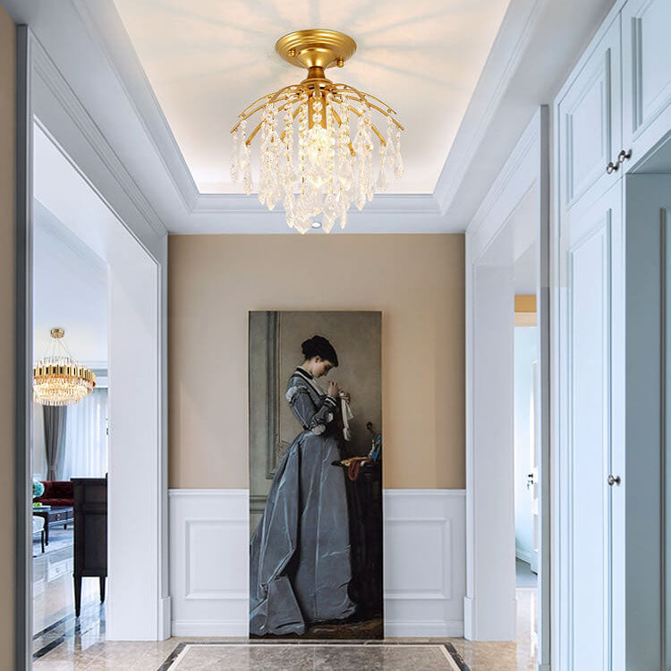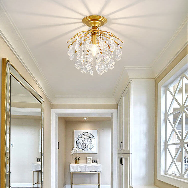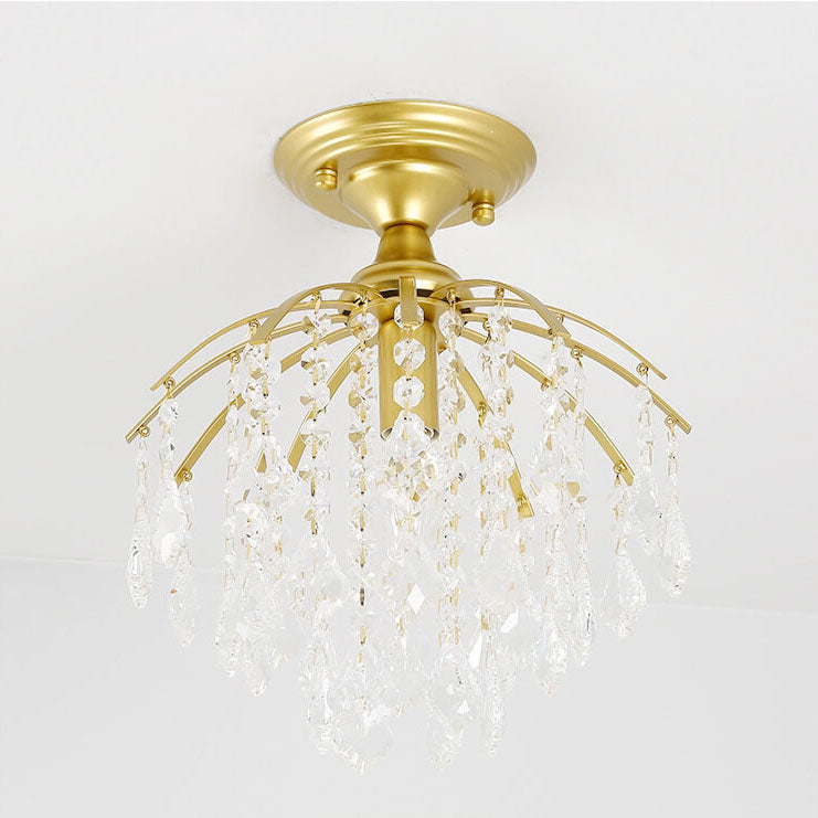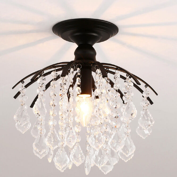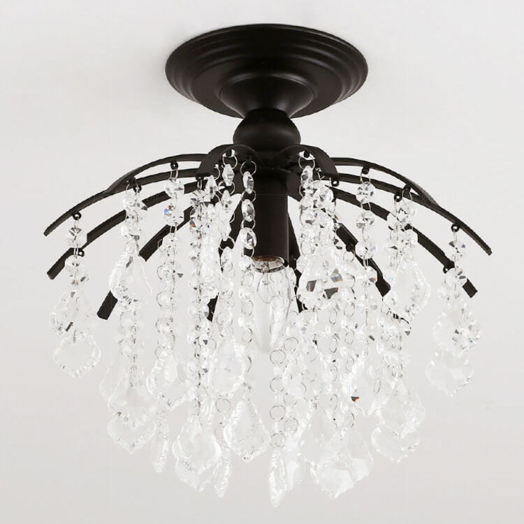 Scandinavian Modern Round Iron Crystal 1-Light Semi-Flush Mount Ceiling Light