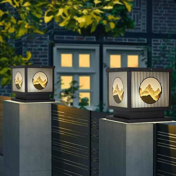 Solar Chinese Landscape Square Post Head Outdoor Waterproof LED Garden Landscape Light