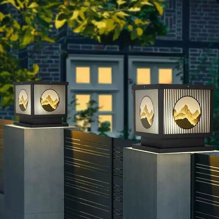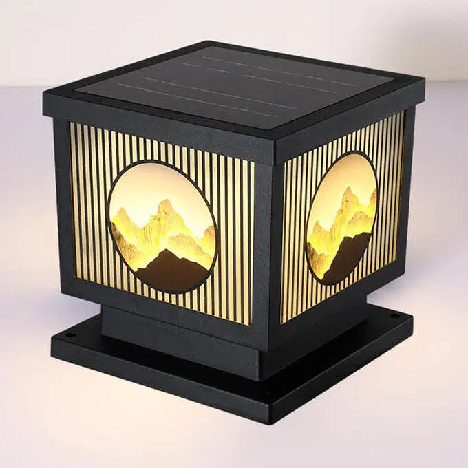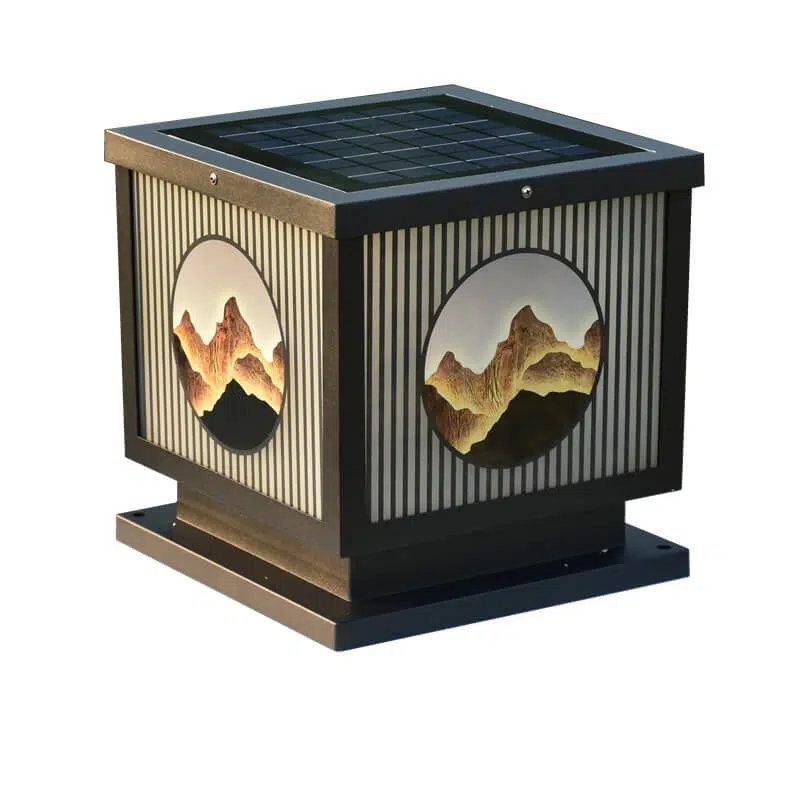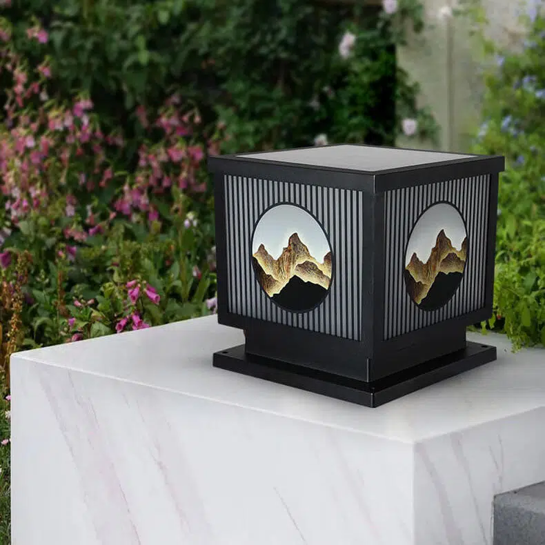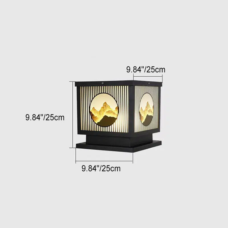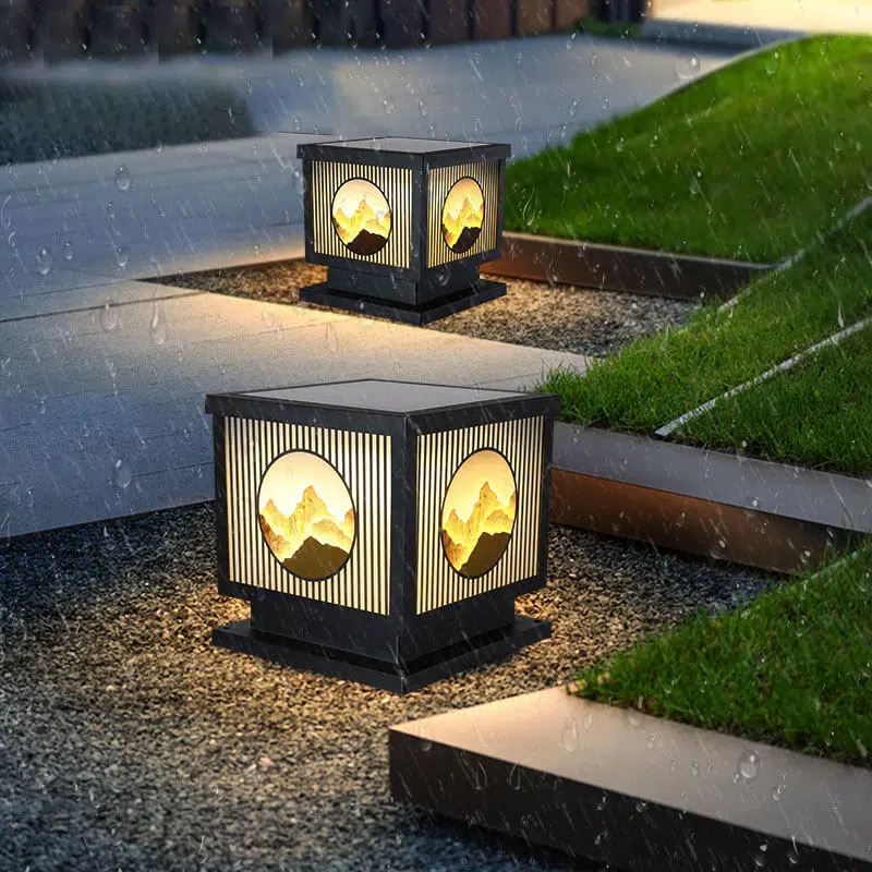 Solar Chinese Landscape Square Post Head Outdoor Waterproof LED Garden Landscape Light